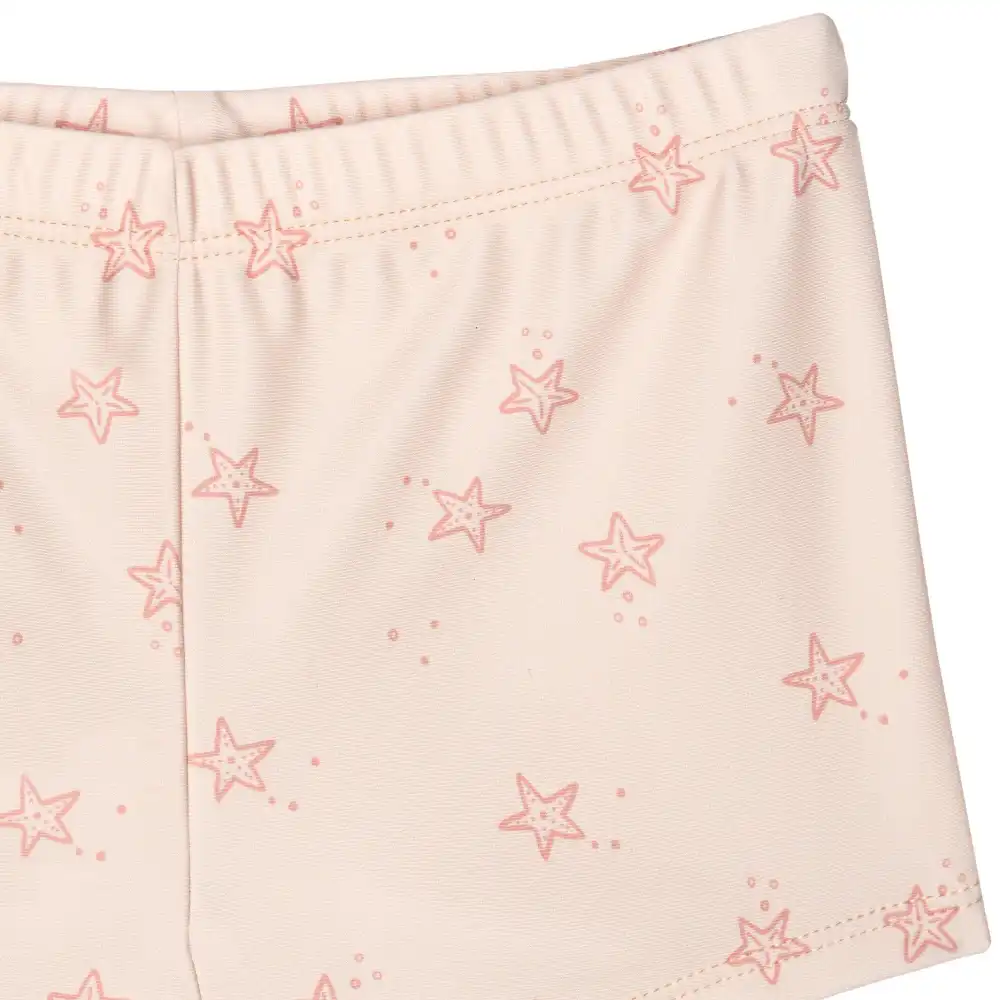 This coordinated, two-piece set of rash guard and bottoms, specially crafted for baby girls and toddler girls, offers an ideal way to enjoy a day at the beach, poolside, or even just playing around in the sprinklers. The quick-drying fabric with UPF 50+ protection guards against the sun's harmful rays, and the matching top and bottom ensure that you’re ready for a day of secure, safe, and stylish enjoyment! Our essentials have been independently certified with STANDARD 100 by OEKO-TEX® so that you don’t have to worry about harmful substances in your baby’s wardrobe. Includes a two-piece rash guard and swim shorts set.