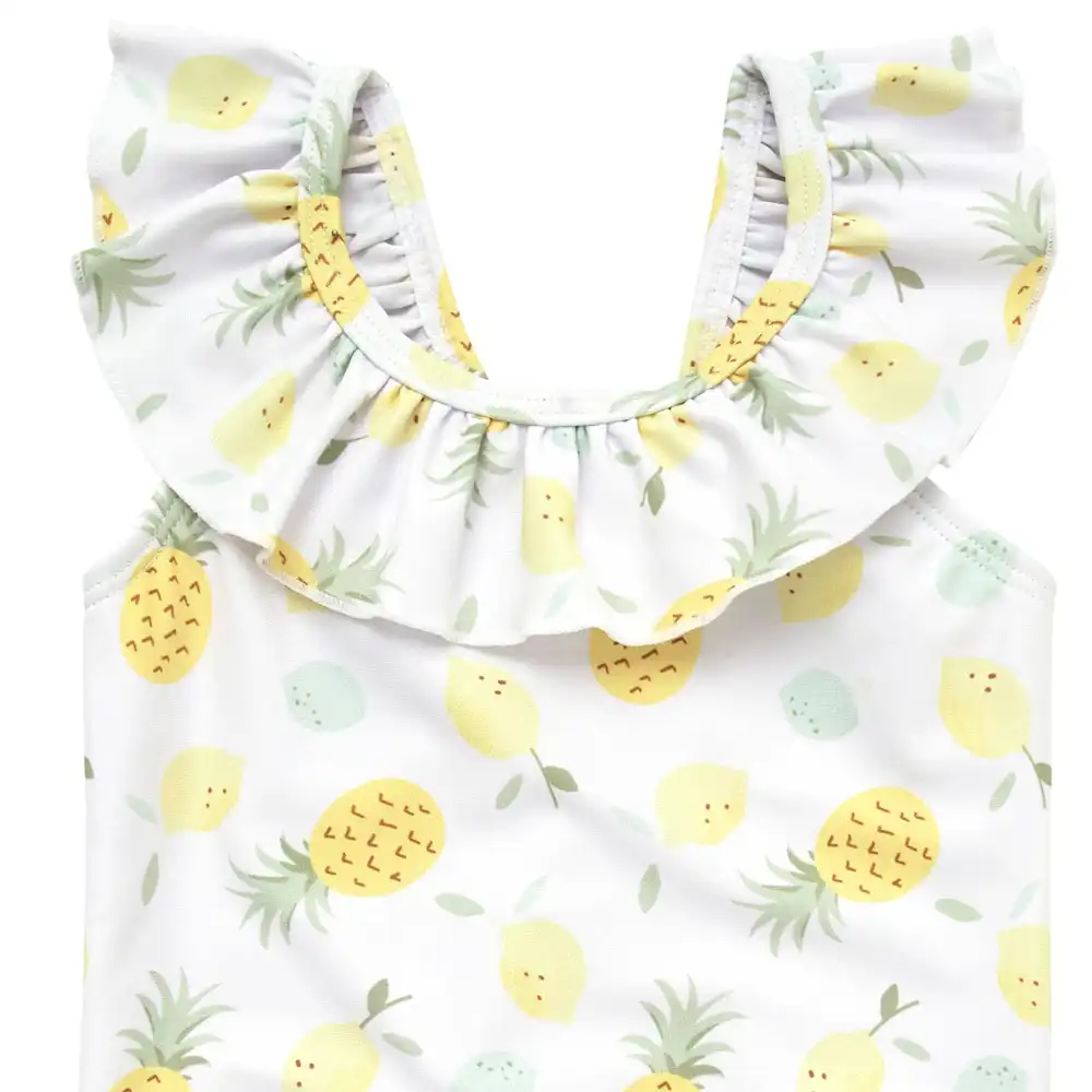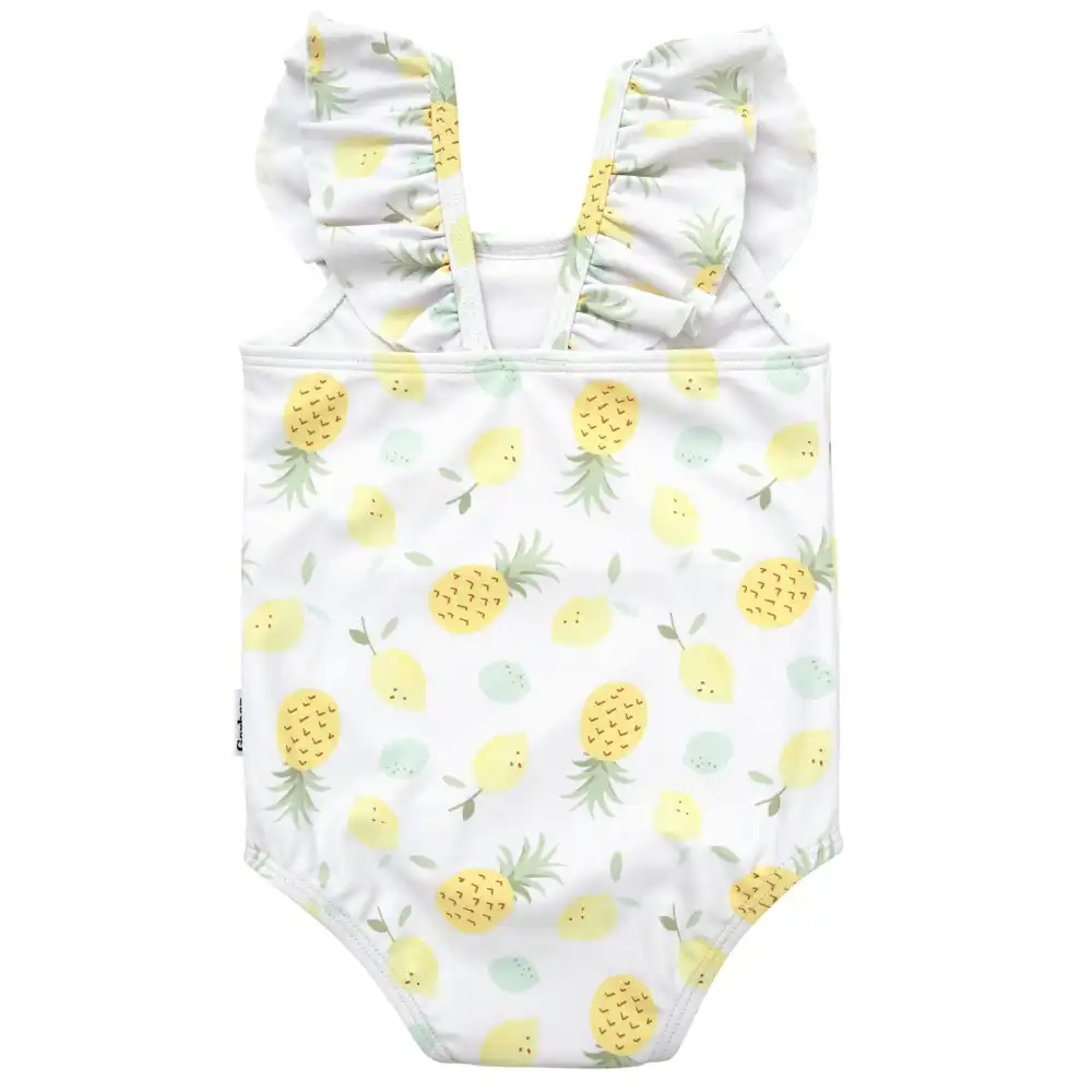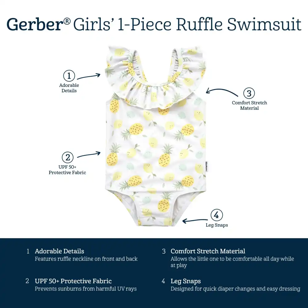 This stylish one-piece swimsuit is an adorable fit for your little girl. With adorable ruffles and a cute pattern, this one-piece swimsuit is perfect for vacation mode or water play at home. Made from UPF 50+ material for protection from the sun so your little one can enjoy her playtime safely. Our essentials have been independently certified with STANDARD 100 by OEKO-TEX® so that you don’t have to worry about harmful substances in your baby’s wardrobe. Includes one-piece swimsuit.