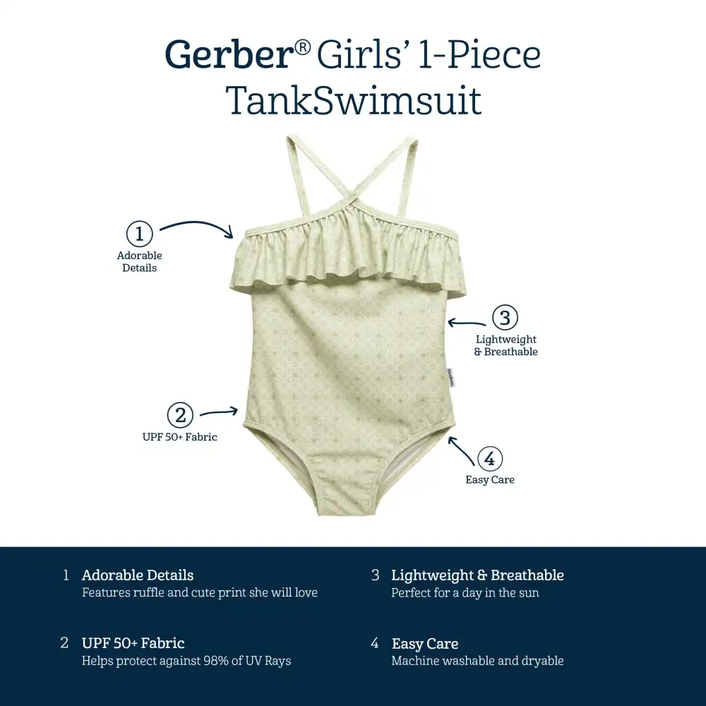 This one-piece toddler girl swimsuit is the perfect way to enjoy a fun day at the beach or pool! Made from UPF 50+ material to protect against harmful rays, you’ll have peace of mind that your little girl is safe while having fun! With a floral print and ruffle for an adorable touch, she will look cute and fashionable while playing. Our essentials have been independently certified with STANDARD 100 by OEKO-TEX® so that you don’t have to worry about harmful substances in your toddler’s wardrobe. Includes one toddler girl swimsuit.