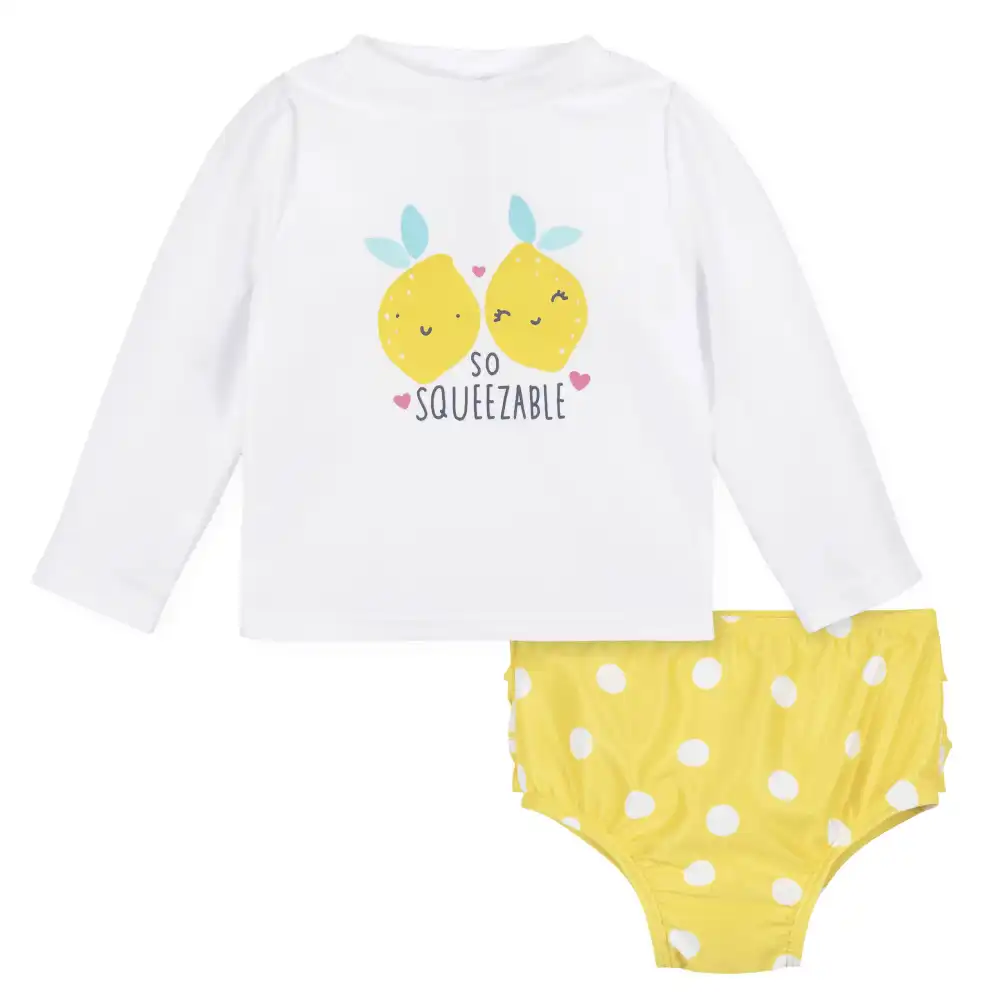 2-Piece Baby & Toddler Girls UPF 50+ Lemon Squeeze Rash Guard & Swim Bottoms Set