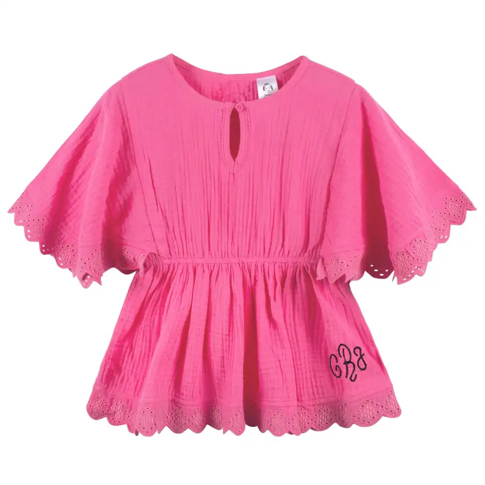Embroidered Baby & Toddler Girls Pink Gauze Kaftan Swim Coverup