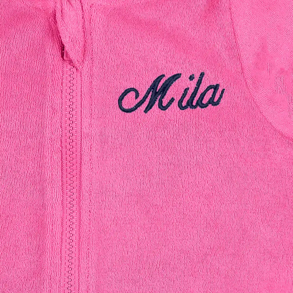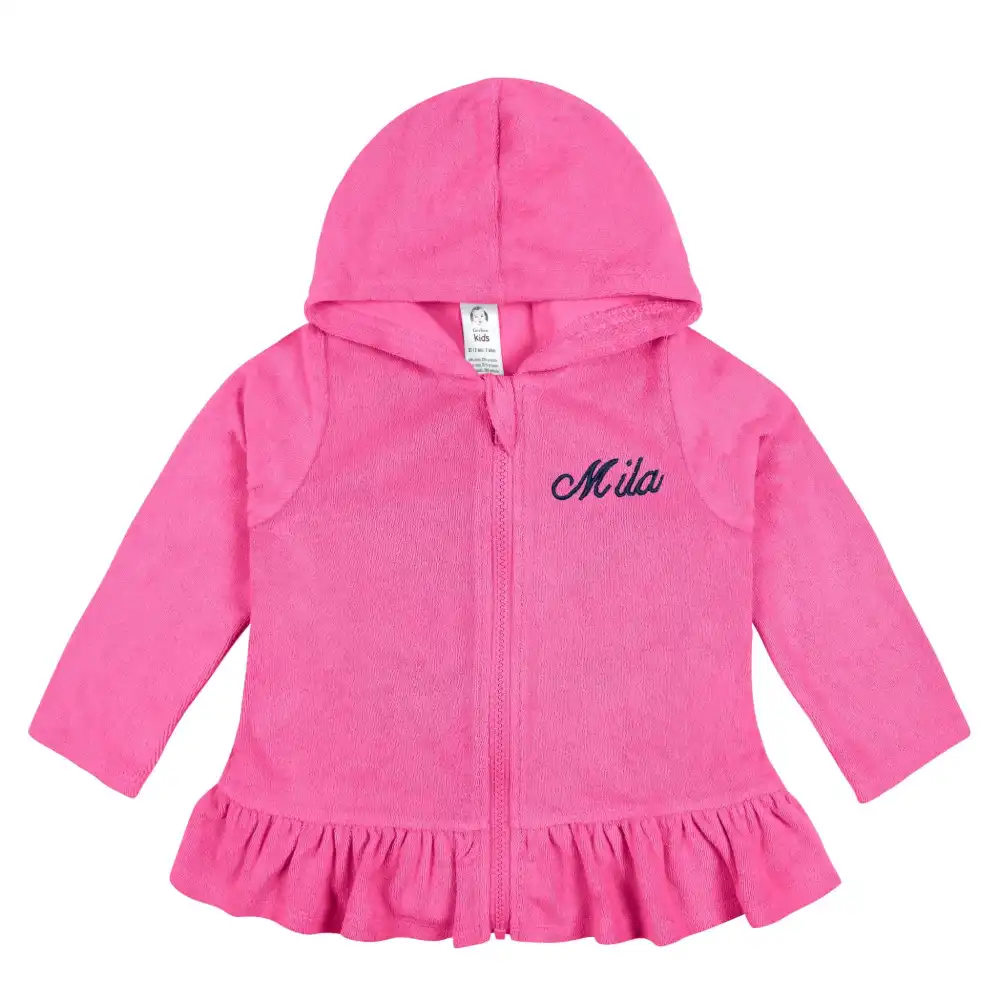 Embroidered Baby & Toddler Girls Pink Hooded Zip Front Terry Swim Coverup