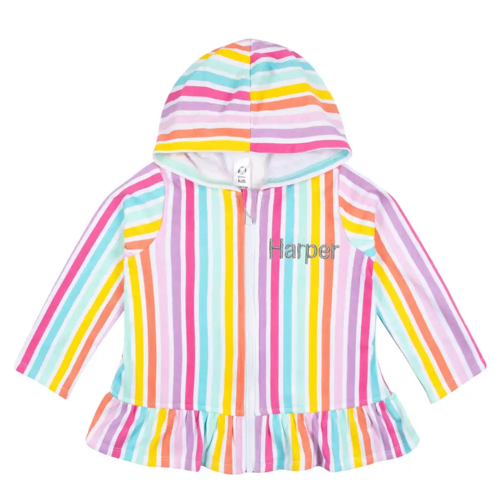Embroidered Baby & Toddler Girls Rainbow Hooded Zip Front Terry Swim Coverup