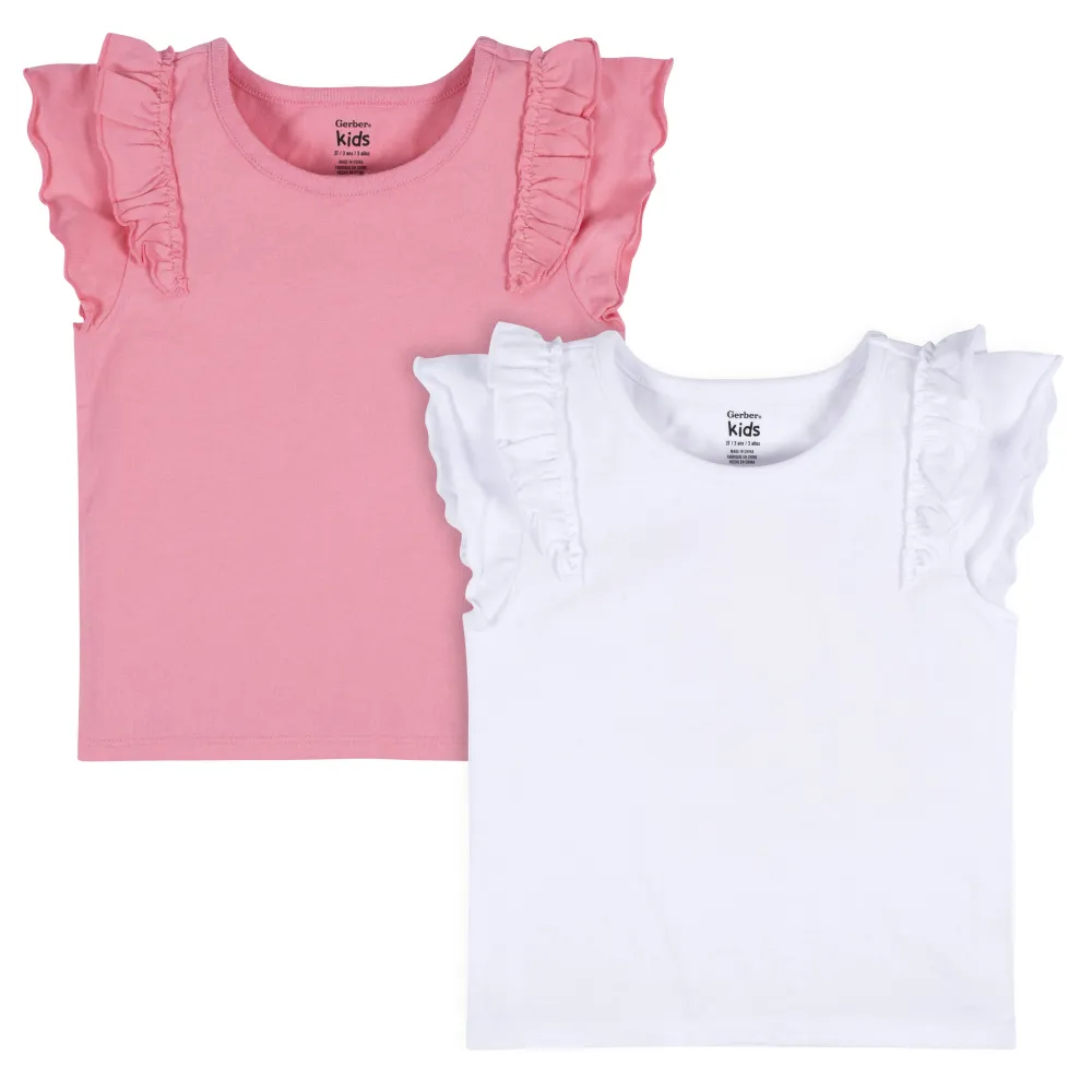 2-Pack Infant Girls Pink & White Double Ruffle Tops, 12M