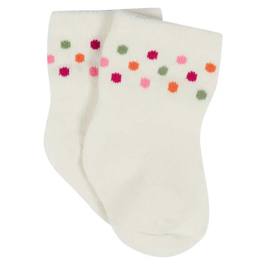 Our Wiggle Proof® socks are a parent’s best friend! Their soft, stretchy design keeps them held gently in place right where they should be, on baby’s feet! We use STANDARD 100 by OEKO-TEX® certification on products tested in an independent laboratory against a list of more than 400 harmful substances, including PFAS. This pack includes 12 pairs of Wiggle Proof® socks in a mustard, pink, and raspberry color scheme.