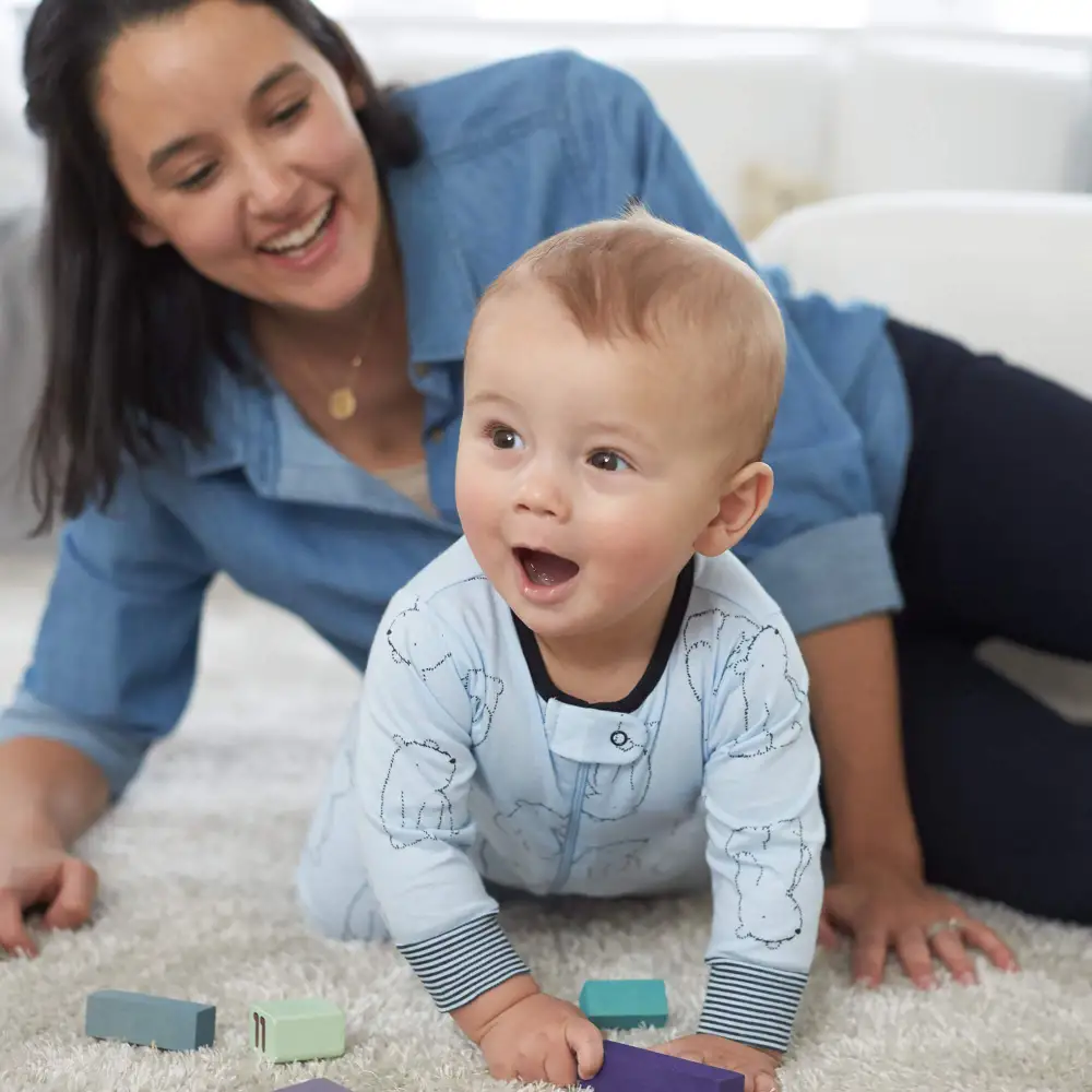 He’ll be ready to relax with this 2-Pack of Sleep ‘n Plays! The Sleep ‘n Plays are cute, comfortable, and machine washable. Made with soft cotton, they’re perfect to wear during the day as well as to sleep in at night. They feature a snap atop the zipper to prevent irritation and are footed for warmth.