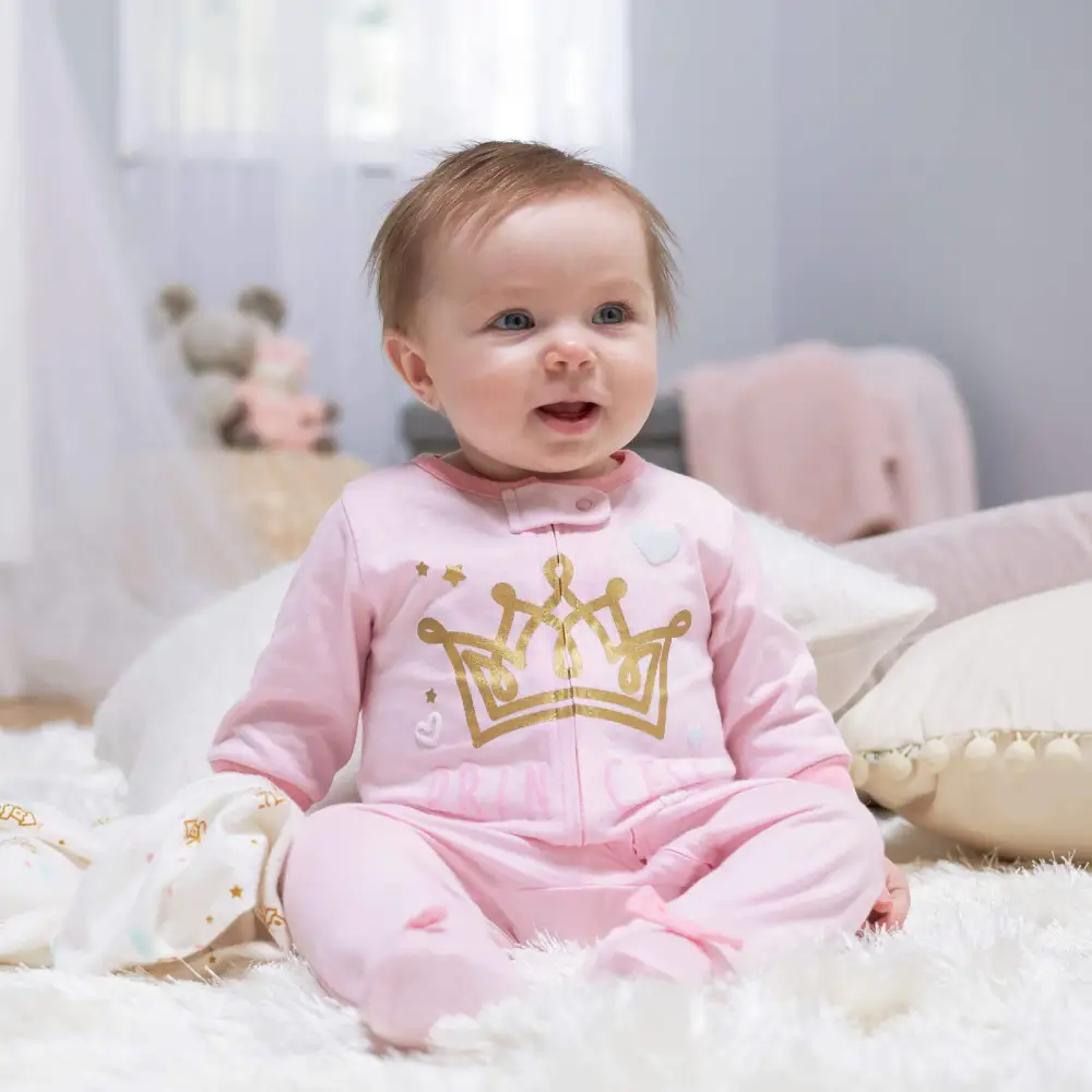She'll look delightful in this 2-Pack of Sleep ‘n Plays! The Sleep ‘n Plays are cute, comfortable, and machine washable. Made with soft cotton, they’re perfect to wear during the day as well as to sleep in at night. They feature a snap atop the zipper to prevent irritation and are footed for warmth.