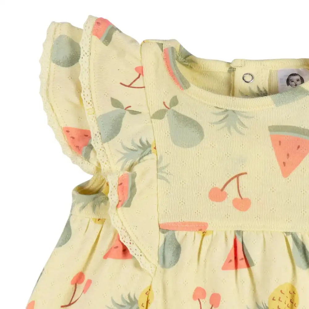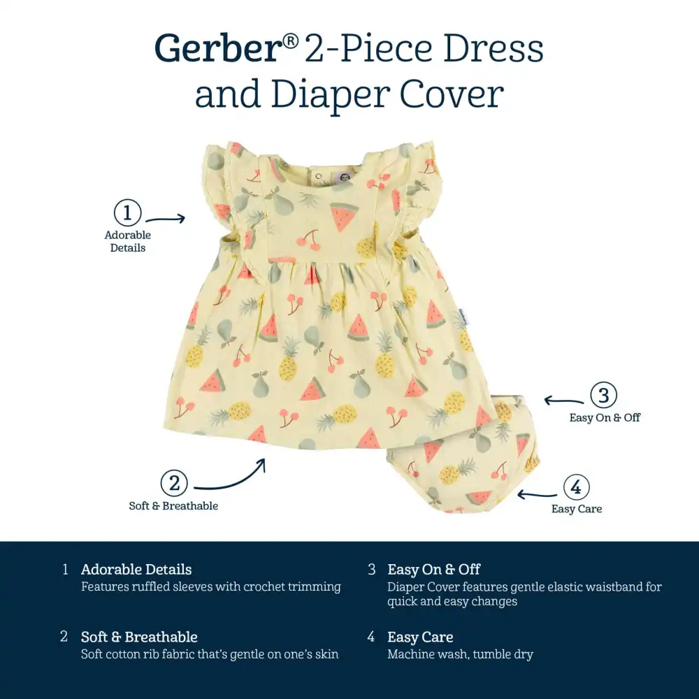 When it comes to dressing your little one, comfort is key, and our baby girl dress and diaper cover set is the perfect sunny day style. Its gentle fabric is ideal for sensitive skin, and the soft, airy fit is perfect for warmer weather. With an easy pull-on style and convenient rear snaps, dressing her has never been simpler. The elegant shoulder ruffles add a touch of class, making this set suitable for family gatherings or picnics in the park. Plus, it's machine washable, so you can focus on making memories, worry-free. Our essentials have been independently certified with STANDARD 100 by OEKO-TEX® so that you don’t have to worry about harmful substances in your baby’s wardrobe. Includes one dress and diaper cover.