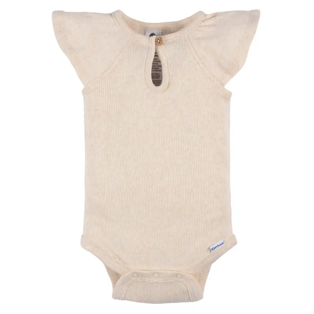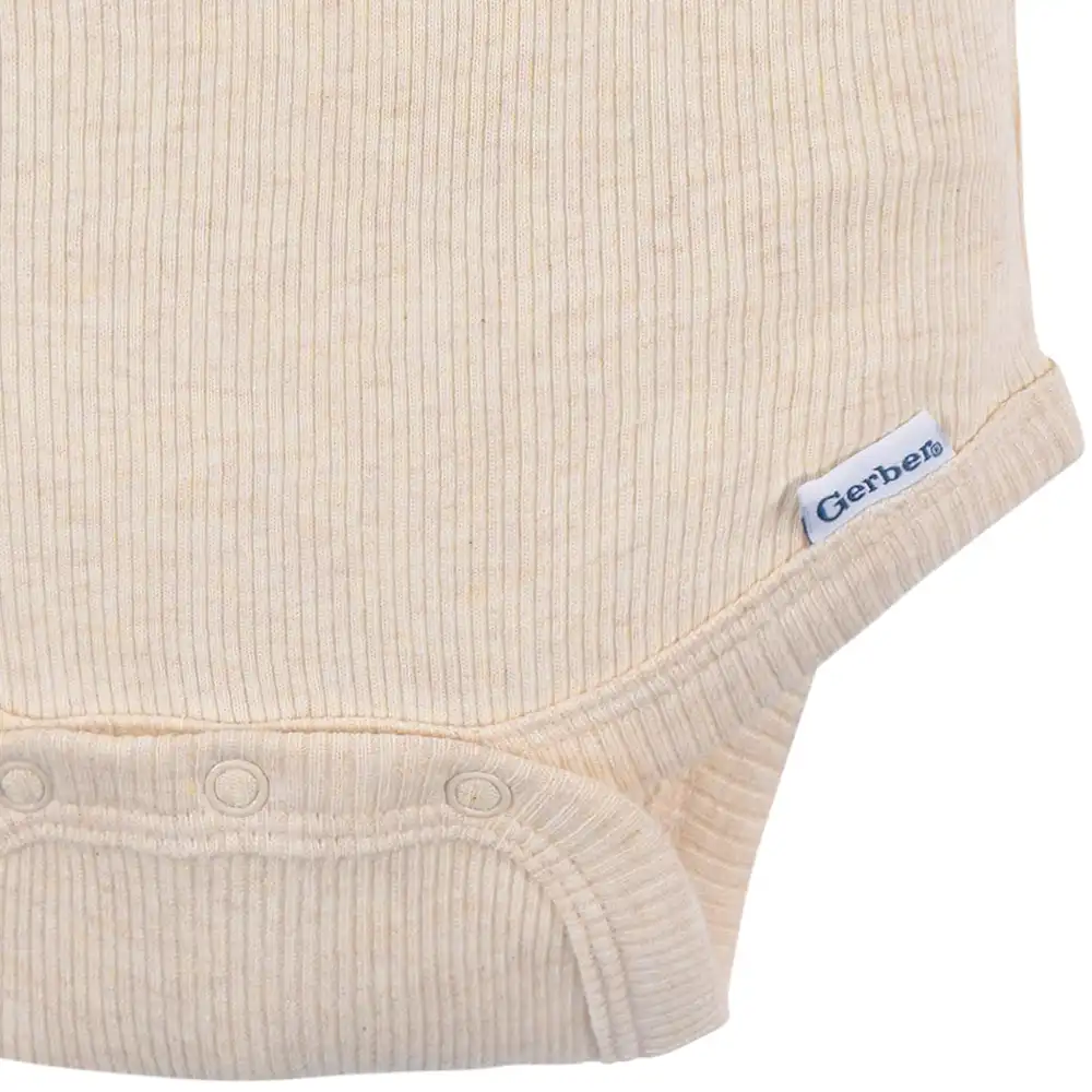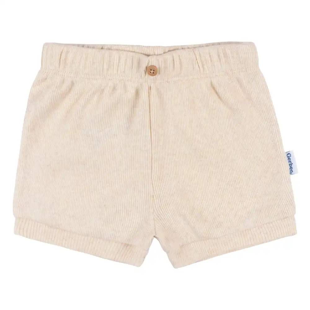 Dress your little one in this adorable solid oatmeal heather baby girl bodysuit and shorts set. Made from soft 100% cotton, the set is gentle on delicate skin, while the bodysuit’s vertical ribbing provides a naturally stretchy and flexible fit. Faux wood buttons add a stylish detail, and leg snaps make dressing and diaper changes simple. Paired with shorts that feature a comfort-stretch waistband for all-day comfort, the outfit offers a timeless look that’s perfect for playtime or outings. Our essentials have been independently certified with STANDARD 100 by OEKO-TEX® so that you don’t have to worry about harmful substances in your baby's wardrobe. Includes one bodysuit with matching shorts.