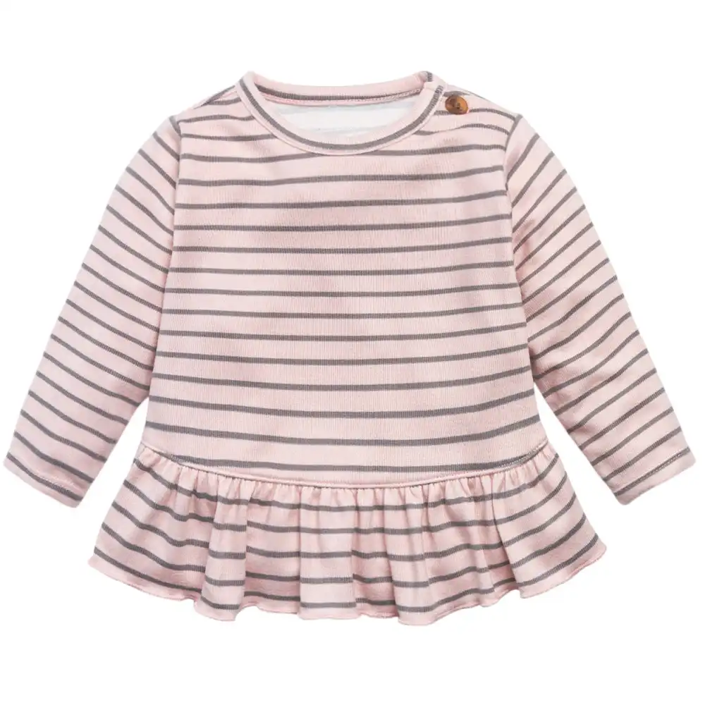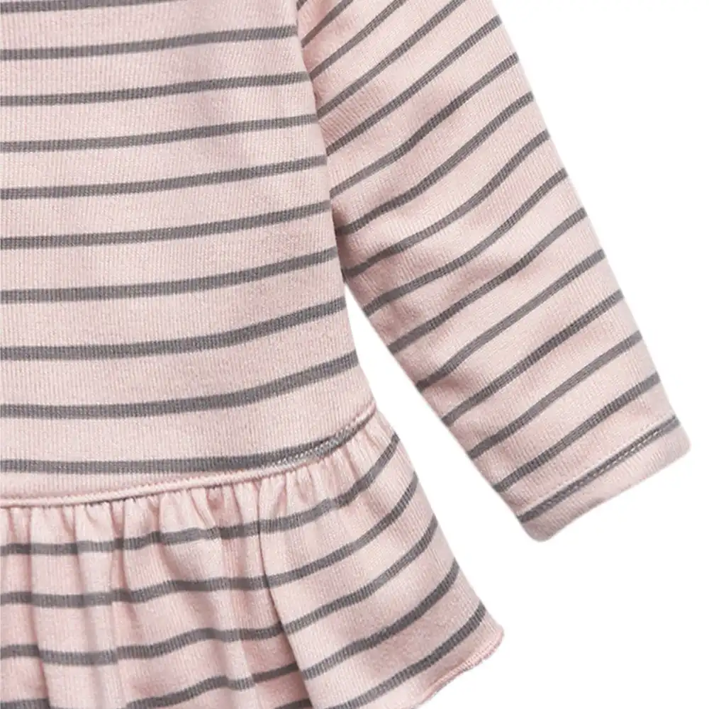 Crafted from soft brushed hacci fabric, our delightful baby girl set featuring a peplum top with matching pants is the perfect choice for your little one. The long sleeves and pants ensure a cozy fit for your baby girl during cooler weather, making it an ideal choice for outdoor adventures or relaxing indoor play. With a comfort-stretch waistband on the pants, dressing is easy with a flexible and comfy fit for your active little one. And for the convenience of busy parents, this charming baby outfit set is machine washable. Our essentials have been independently certified with STANDARD 100 by OEKO-TEX® so that you don’t have to worry about harmful substances in your baby’s wardrobe. Includes matching top and bottom.