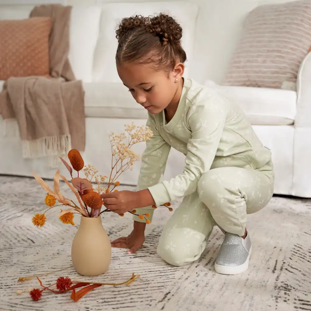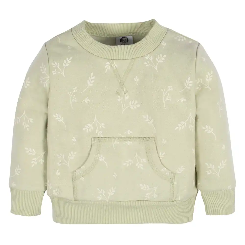 Ideal for chilly autumn days, this green leaves coordinating sweatshirt and pants set for baby and toddler girls will keep your little one comfy and stylish all season long. Layer the sweatshirt over another shirt for a toasty warm fit. Crafted from incredibly soft cotton with Spandex at the neck, wrists, waist, and ankles, this ensemble is perfect for running errands, playdates, or simply lounging around the house. Our essentials have been independently certified with STANDARD 100 by OEKO-TEX® so that you don’t have to worry about harmful substances in your baby’s wardrobe. This pack includes one sweatshirt with matching pants.