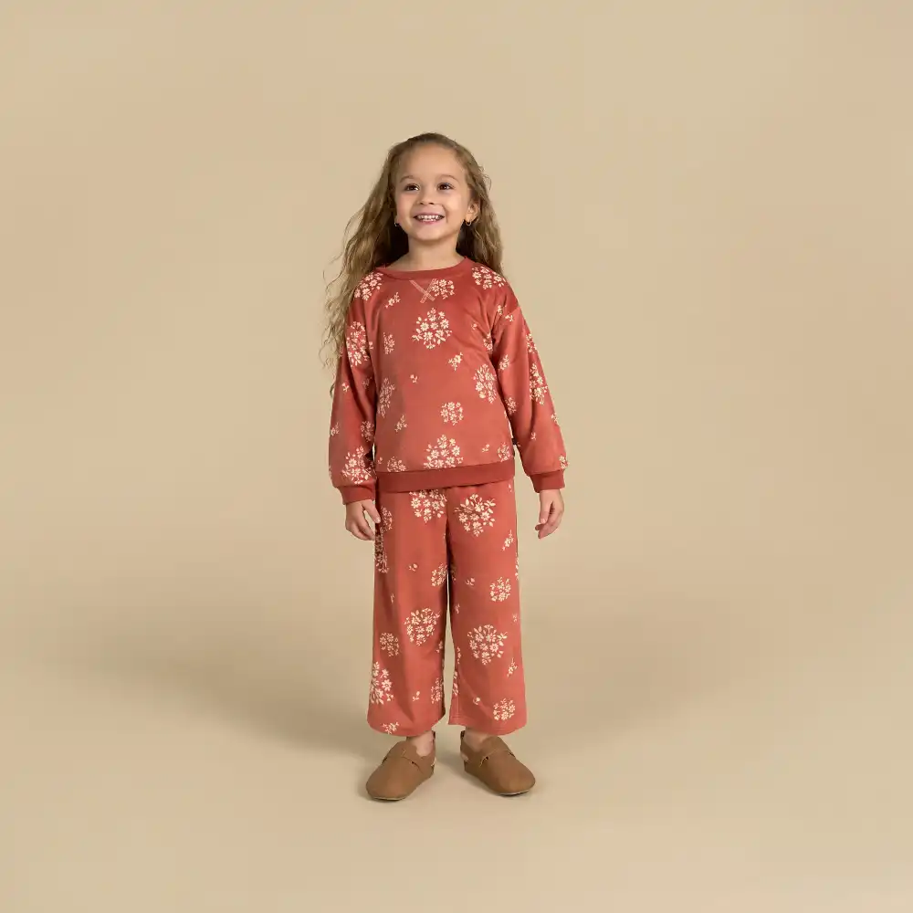 Made from very soft bunny fleece, our baby girl or toddler girl top and pants pajama set will keep your little one snug and content all night long. Featuring comfort-stretch ribbing on the pants' waistband and shirt hem, as well as at the neckline and wrists, they offer a comfortable fit that moves with your baby. Designed for cooler nights, these pajamas are also flame-resistant, ensuring your little one sleeps soundly and safely. Our essentials have been independently certified with STANDARD 100 by OEKO-TEX® so that you don’t have to worry about harmful substances in your little one’s wardrobe. Pack includes matching pajamas top and bottom.