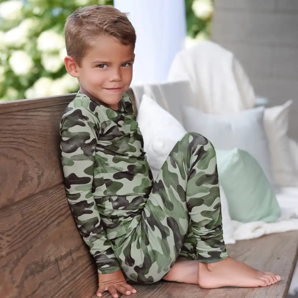 • 2-Piece Infant & Toddler Hide & Seek Camo Buttery Soft Viscose Made from Eucalyptus Snug Fit Pajamas