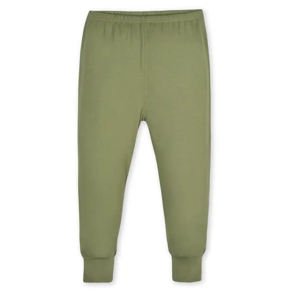 Designed for every season, our buttery soft collection of affordable rompers, sleepwear, Dresses and headbands will be their new wardrobe faves! We've partnered with Livaeco™ by Birla Cellulose to bring you and your little ones a more sustainably produced, environmentally-friendly viscose fiber collection made predominately from eucalyptus blended with spandex. This extremely soft 2-piece solid mos / olive green pajama set is super comfy and a must have for bedtime for sure. High-quality, lightweight, breathable, durable fabric with the perfect amount of stretch for active babies and toddlers. Prints and solids made for sibling matching. Gerber® quality, comfort, safety and value never goes out of style!