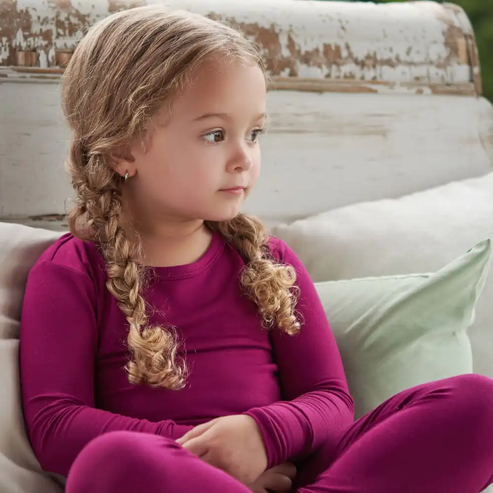 Designed for every season, our buttery soft collection of affordable rompers, sleepwear, Dresses and headbands will be their new wardrobe faves! We've partnered with Livaeco™ by Birla Cellulose to bring you and your little ones a more sustainably produced, environmentally-friendly viscose fiber collection made predominately from eucalyptus blended with spandex. This extremely soft 2-piece solid raspberry pajama set is super comfy and a must have for bedtime for sure. High-quality, lightweight, breathable, durable fabric with the perfect amount of stretch for active babies and toddlers. Prints and solids made for sibling matching. Gerber® quality, comfort, safety and value never goes out of style!