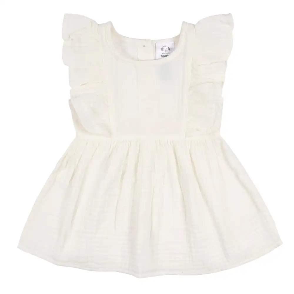 • 2-Piece Toddler Girls Ivory Gauze Dress & Diaper Cover Set