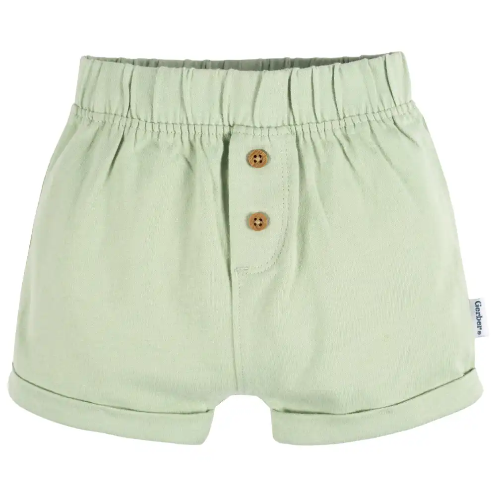 Sunny days mean it’s time for a wardrobe refresh! This three-pack of baby unisex shorts offers a fantastic chance to expand their wardrobe. Crafted from soft cotton, they promise a gentle touch on sensitive skin. Designed with a comfy, stretchy waistband for a secure and cool fit, they're an excellent choice all season long. With a variety of colors included in this set, you can pair them with a wide array of tops to create adorable outfits. And keeping them clean is easy, simply toss them in the washing machine or dryer when necessary. Our essentials have been independently certified with STANDARD 100 by OEKO-TEX® so that you don’t have to worry about harmful substances in your baby’s wardrobe. Pack includes three shorts.