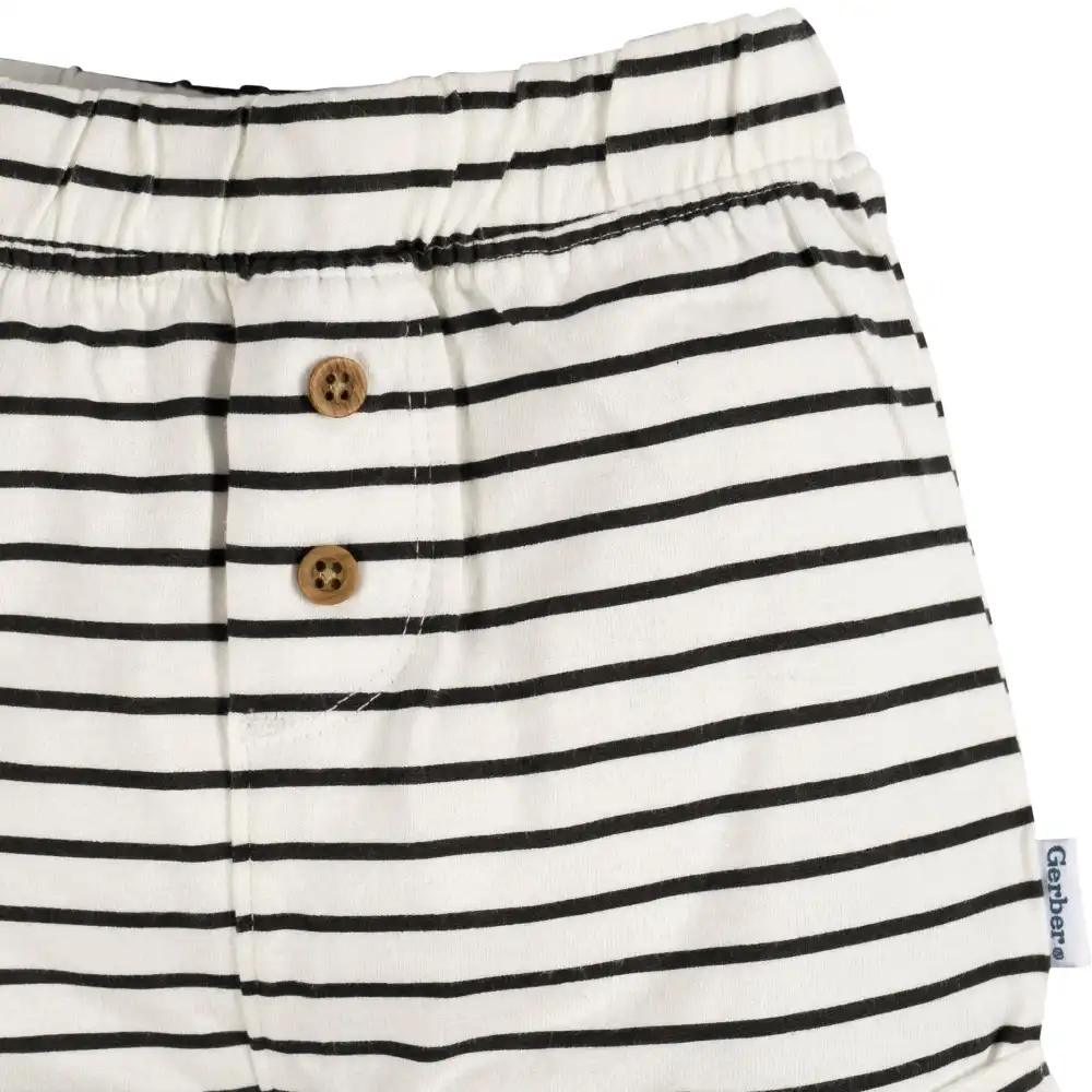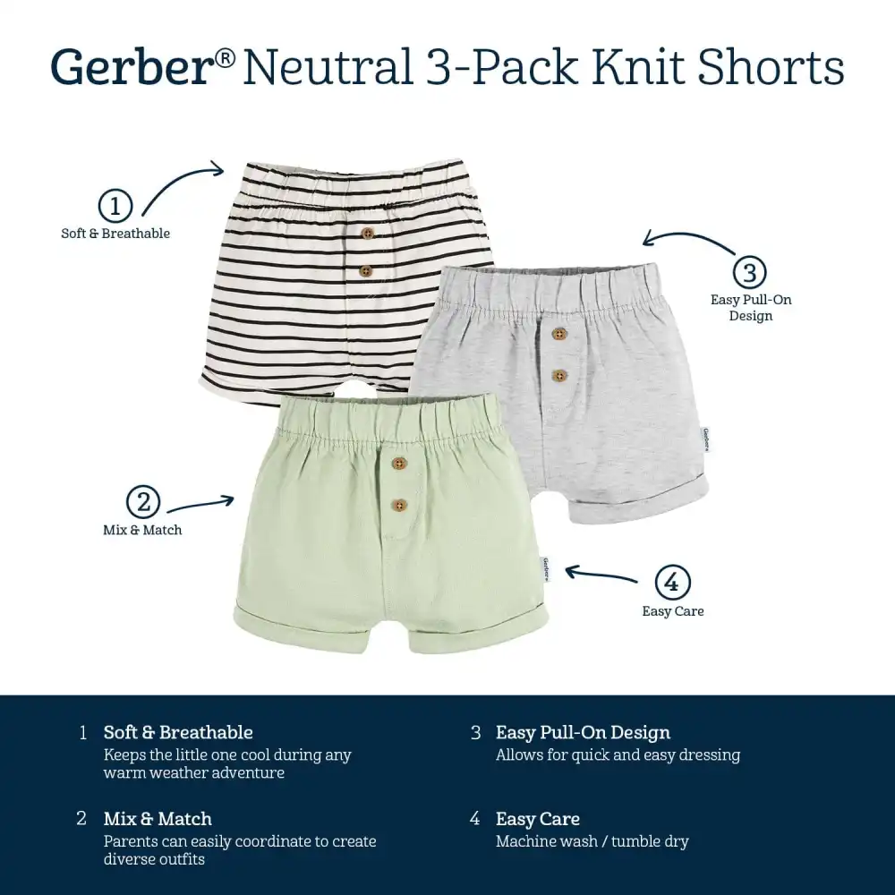• 3-Pack Baby Neutral Black Stripe, Light Grey Heather, & Green Knit Shorts