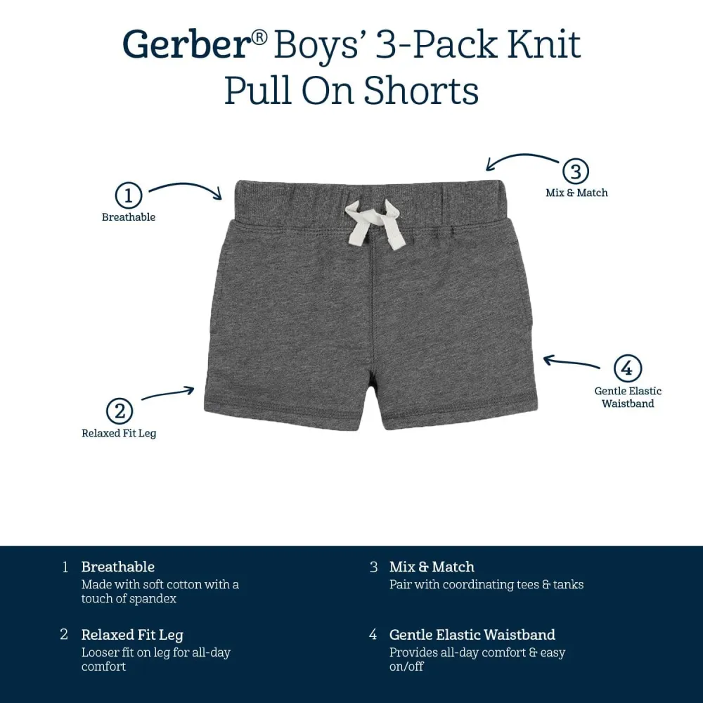 • 3-Pack Baby & Toddler Boys Neat Neutrals Pull-On Knit Shorts