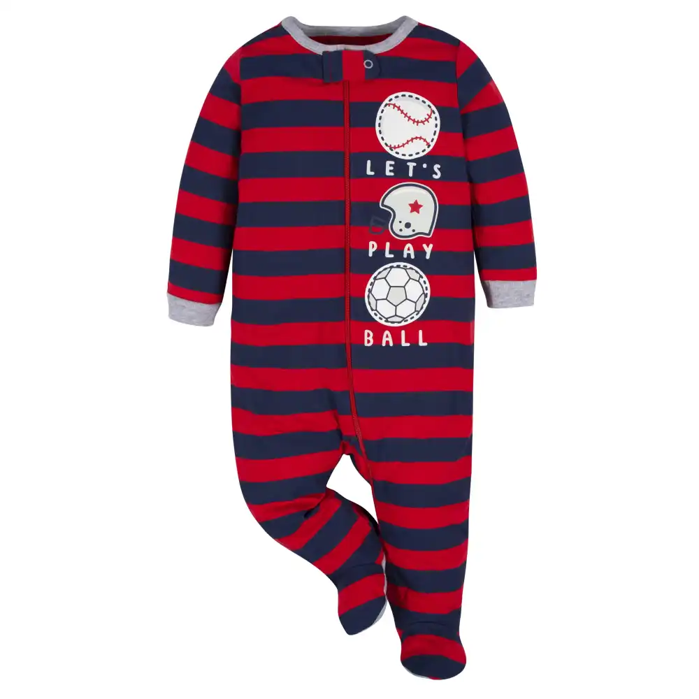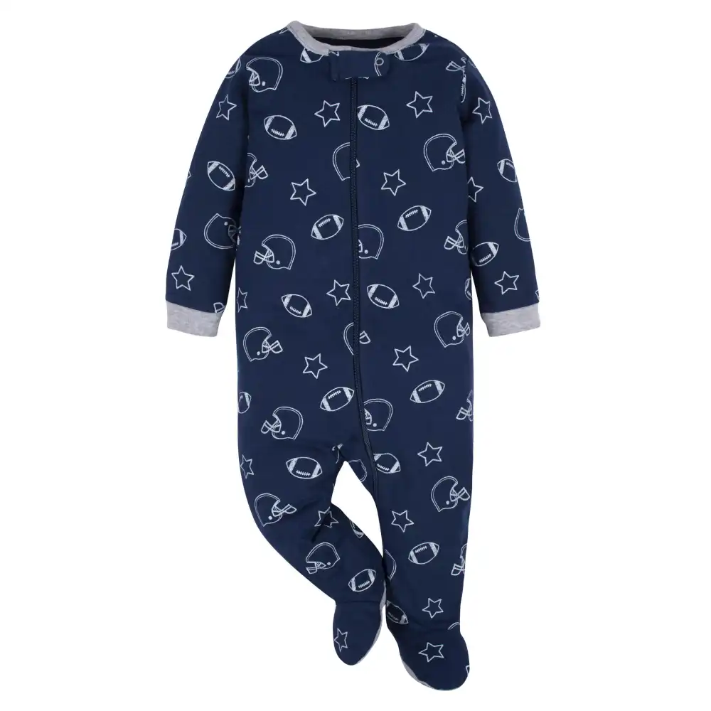 The title says it all! Our Sleep ‘n Plays are super versatile and perfect for just about any activity. They truly are a perfect newborn outfit! We use STANDARD 100 by OEKO-TEX® certification on products tested in an independent laboratory against a list of more than 400 harmful substances, including PFAS. This pack includes four Sleep 'N Plays with sports themed art.