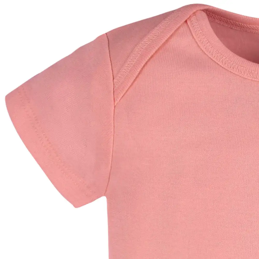 Our 100% cotton, mauve short sleeve Onesies® brand bodysuit is a classic and versatile option for any baby's wardrobe. The slight stretch and relaxed fit keep your little one comfy all day, while the interlock design provides a soft, warm feel for sensitive baby skin. An ideal layering companion, it's easy to match additional outfit pieces to this bodysuit. Leg snaps make diaper changes easy, and the lap shoulder neckline helps you pull the entire piece down over your baby's legs when changes are necessary. Machine washable and dryable for easy care, this will fast become a regular part of your baby's everyday wear.