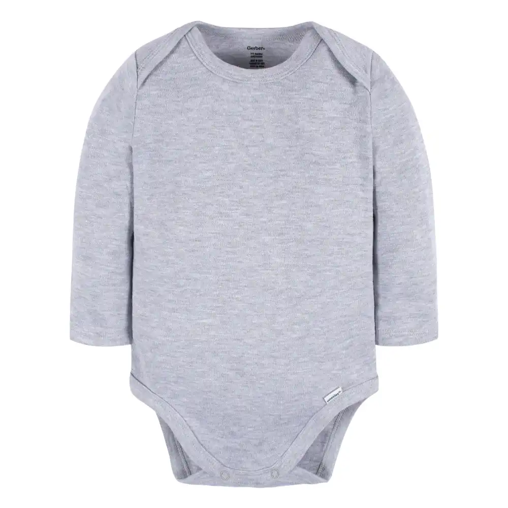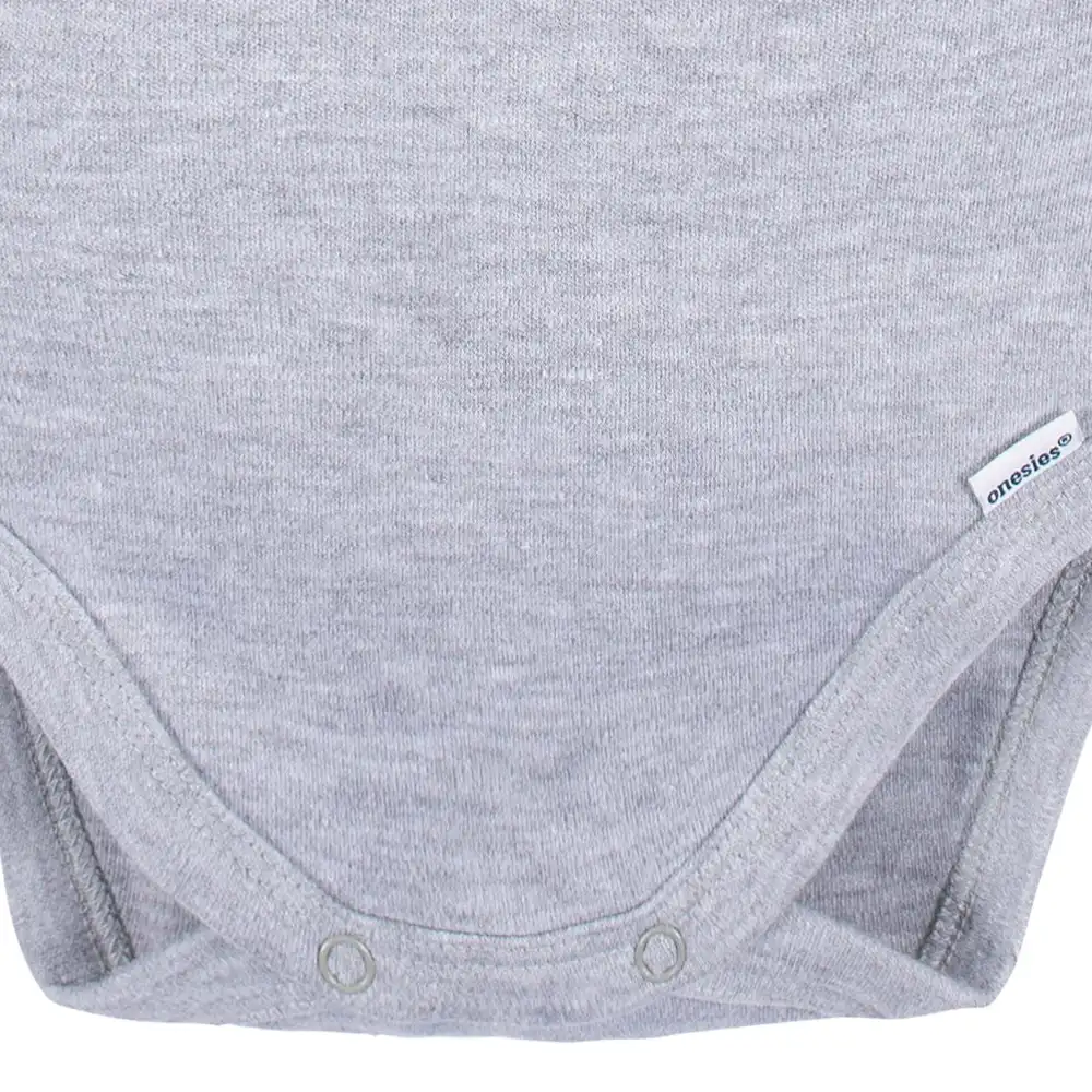 Onesies® brand bodysuits are a must-have for your baby's wardrobe. These long sleeve, grey bodysuits are ideal for cozy wear and easy to match with other outfit pieces and layers. Made from 100% cotton, to be gentle even on sensitive skin, these baby bodysuits are soft and comfortable for all day wear. A simple snap closure makes diaper changes easy, and the lap shoulder neckline enables you to pull the entire piece down over baby's legs if a change is needed. Easy to care for, simply toss them in washer or dryer as needed. Our essentials have been independently certified with STANDARD 100 by OEKO-TEX® so that you don’t have to worry about harmful substances in your baby’s wardrobe. This pack includes five bodysuits.