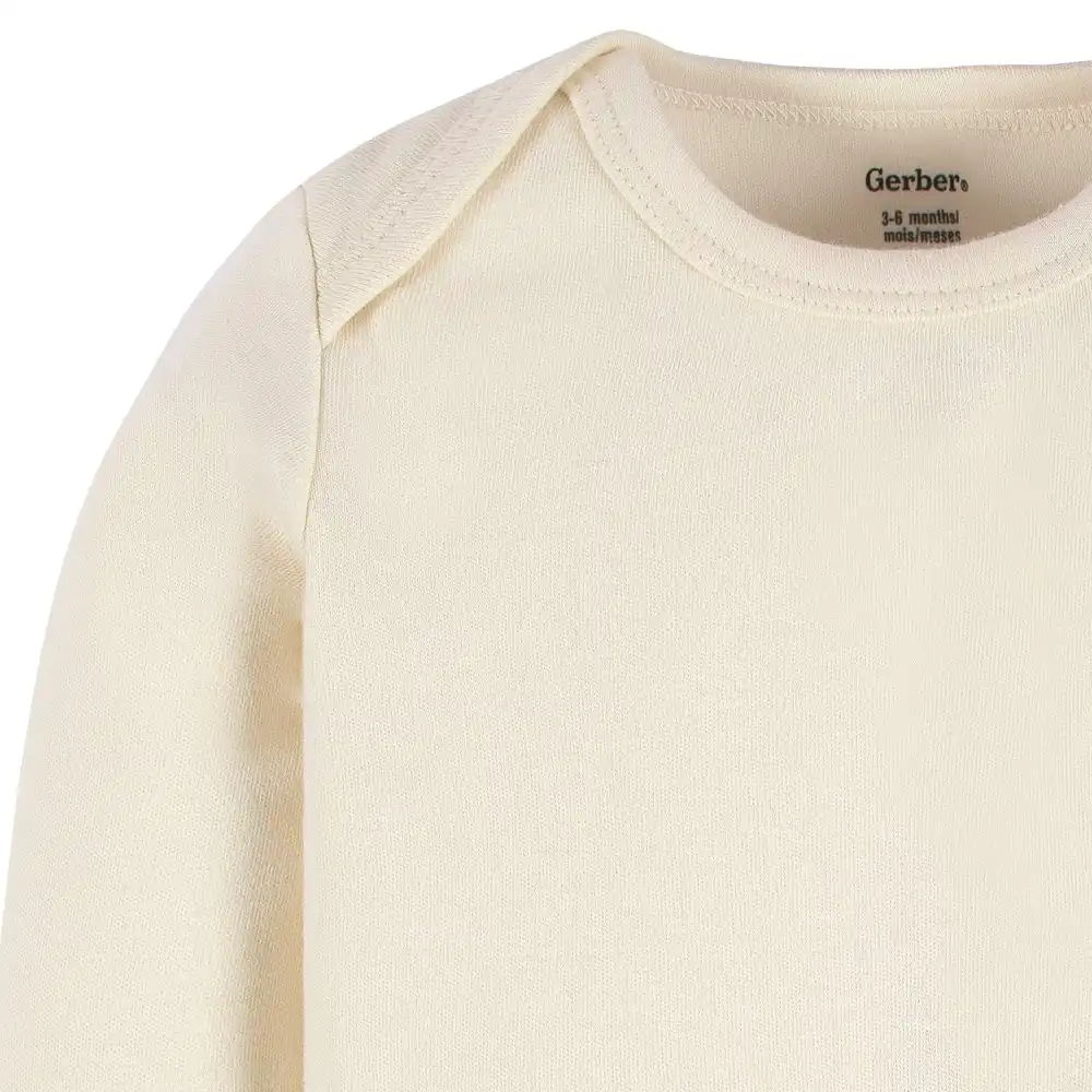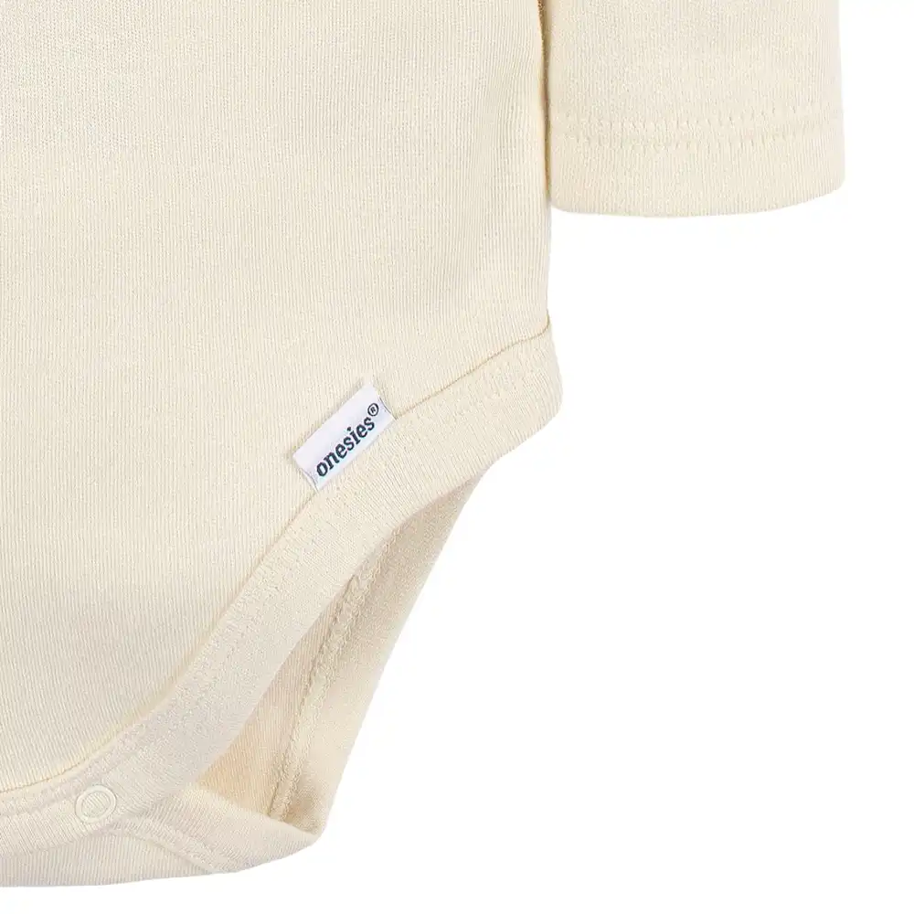 This set of Onesies® brand baby gender-neutral bodysuits adds versatility to your little one's wardrobe. The long sleeves help keep your baby comfortable, and they can be paired with other clothing items for additional layers. Made from 100% cotton interlock, each bodysuit is soft and warm with a gentle fit on sensitive skin. Snap closures at the legs make diaper changes easy, and the bodysuits also feature a lap shoulder neckline so the entire piece can be removed down over your baby's legs if needed. Machine wash and dry for simple care. Our essentials have been independently certified with STANDARD 100 by OEKO-TEX® so that you don’t have to worry about harmful substances in your baby’s wardrobe. This pack includes five bodysuits.