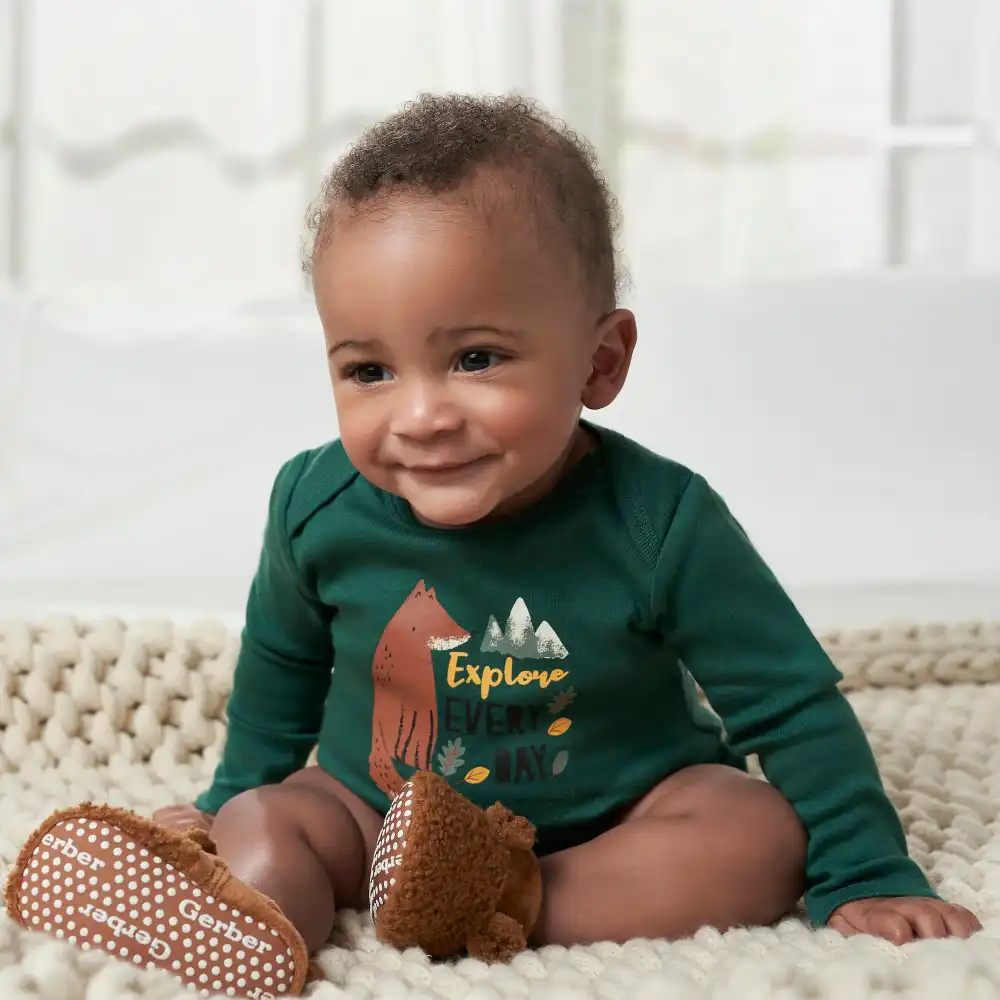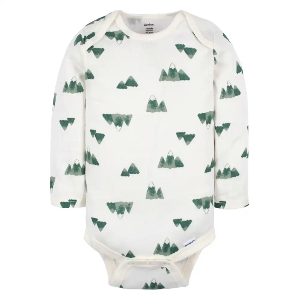 Nature themed Onesies® Brand Bodysuits are made with 100% cotton for a gentle feel on sensitive skin. With comfort-stretch ribbing at the neck and legs, they're easy to put on and take off, while the leg snaps ensure a secure fit. In case of a dirty diaper, simply undo the snaps or use the shoulder flaps to pull off the bodysuit down over the legs. Changing time has never been easier! The long sleeve style keeps your little one warm on chilly days, and the versatile design allows them to be worn as a one-piece outfit or layered with other clothing. Our essentials have been independently certified with STANDARD 100 by OEKO-TEX® so that you don’t have to worry about harmful substances in your baby’s wardrobe. This pack includes six Onesies® Bodysuits.