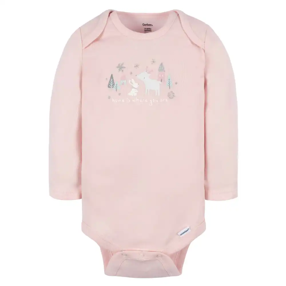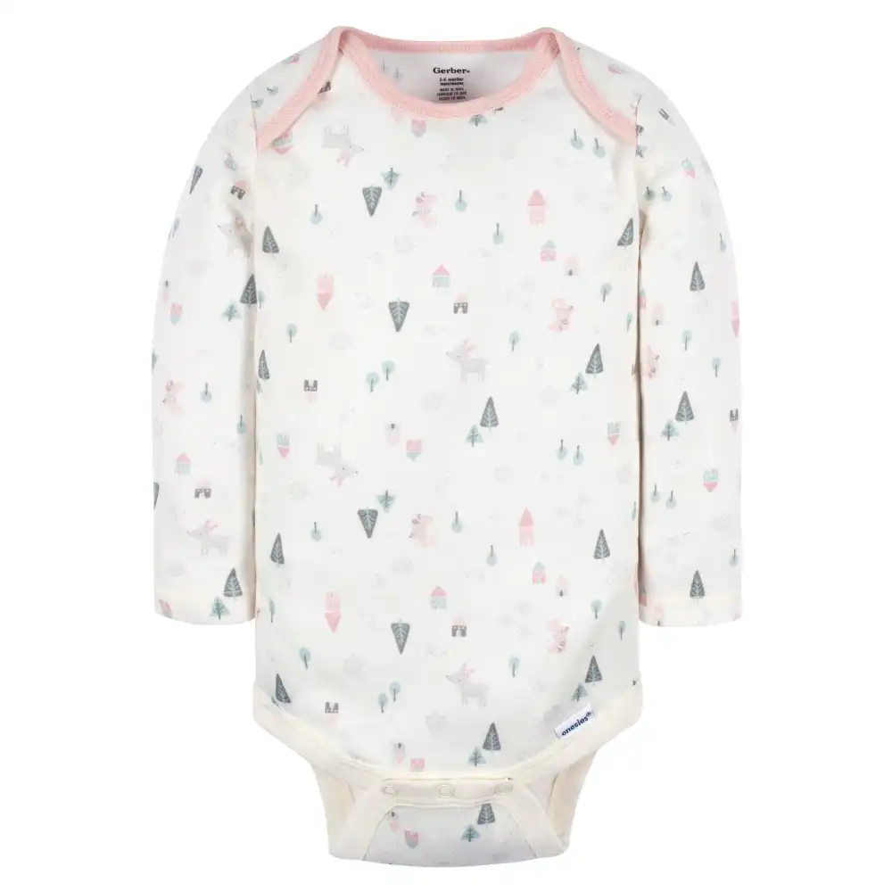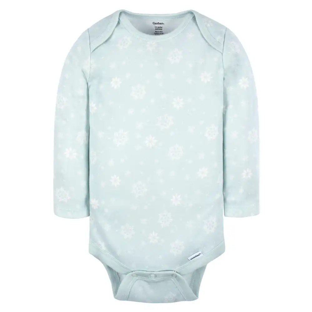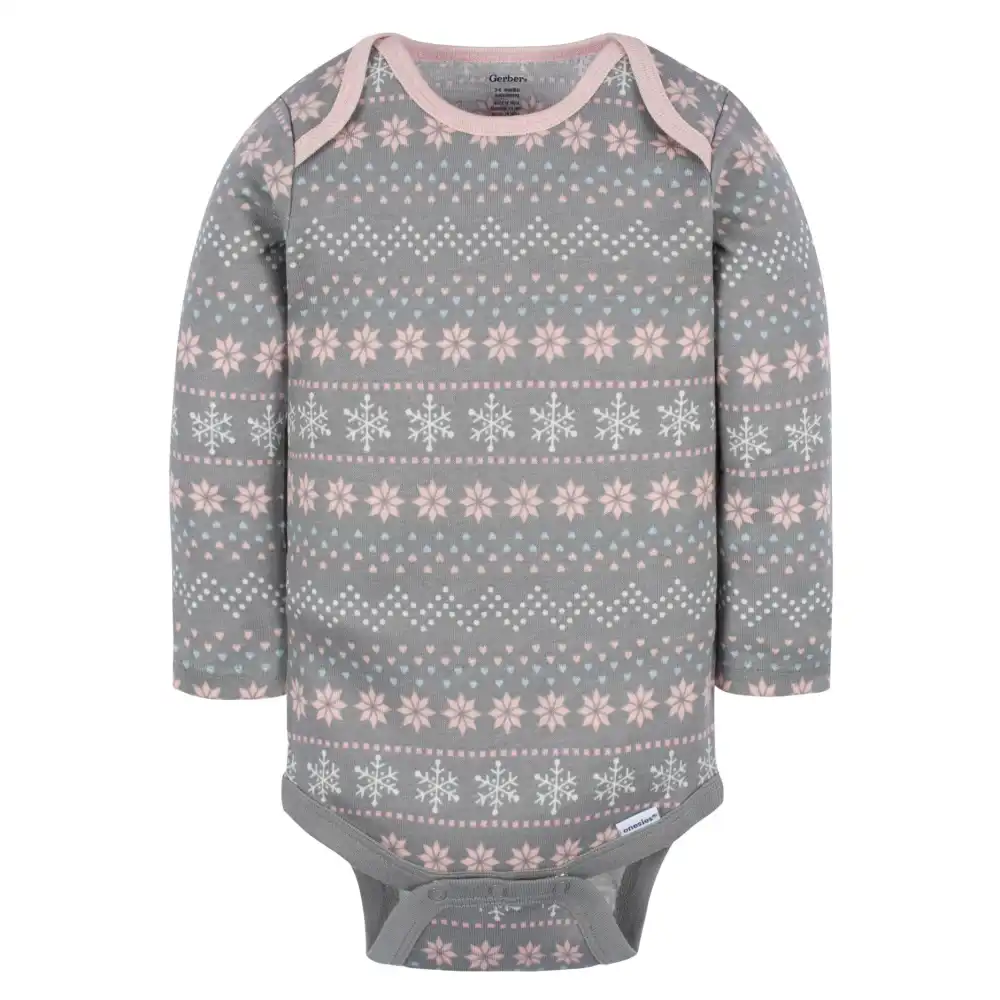 Your baby girl will look adorable in these cozy, winter themed Onesies® Brand Bodysuits. Featuring long sleeves to keep your little one warm, adding extra layers is easy on chilly days. Made from 100% cotton to be gentle on sensitive skin and designed with comfort-stretch ribbing along the neck and legs and to keep your little one comfy all day. Diaper changes are easy with snaps around the legs. And if it's time for a change, specially designed shoulder flaps make it easy to pull dirty clothes down over the legs. Our essentials have been independently certified with STANDARD 100 by OEKO-TEX® so that you don’t have to worry about harmful substances in your baby’s wardrobe. This pack includes six Onesies® Bodysuits.