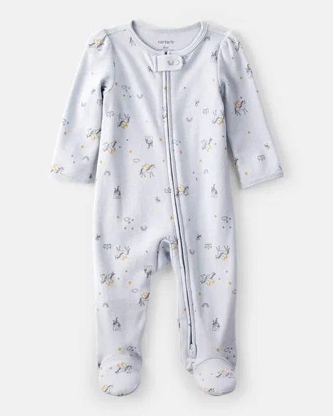 This floral sleep & play keeps up with whatever the day (or night) throws at you. A 2-way zip makes for faster changes when you're half-asleep and elbow-deep in diapers. The sweet ditsy floral print brings just the right touch of charm, while built-in footies mean one less sock to find under the crib. Cozy enough for snoozing, comfy enough for all-day wear.