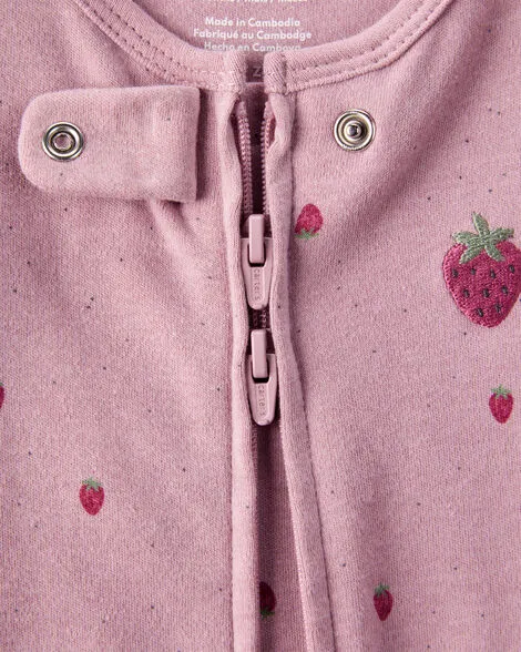 Baby Girl Strawberry Print 100% Cotton Sleep & Play - Pink