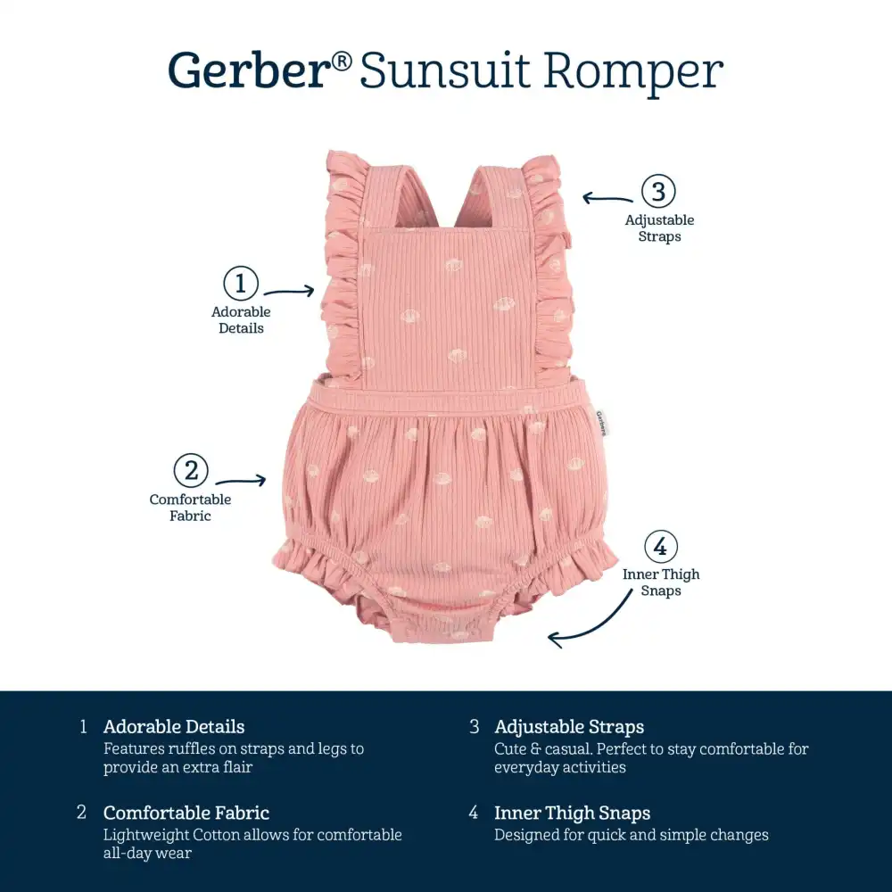 Add a burst of sunshine to your little one’s closet with our charming baby girl romper! Made primarily from lightweight cotton with spandex for a gentle stretch, this romper ensures a delicate touch and comfortable fit. With the practical leg snaps, changing diapers and getting dressed are quick and stress-free. The sleeveless style and lightweight material are perfect for sunny days, and cleaning is simple with easy machine washing so she can wear it again and again. Get ready for the season with this essential romper for your baby girl. Our essentials have been independently certified with STANDARD 100 by OEKO-TEX® so that you don’t have to worry about harmful substances in your baby’s wardrobe. Includes one romper.