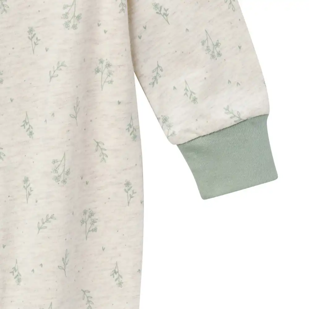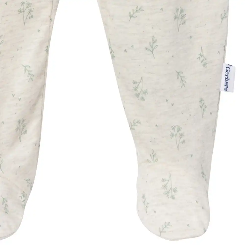 Wrap your baby in comfort with our Sleep 'N Play in a soothing oatmeal heather with charming green vines and trim accents. Crafted from 100% cotton, it’s incredibly gentle on delicate skin. The full-length zipper with a neckline protector ensures easy dressing and diaper changes, while the ribbed cuffs and neckline provide a secure, comfy fit. The cozy footie style keeps tiny toes warm and snug. Perfect for snuggling, napping, or playing this adorable Sleep 'N Play is a delightful addition to your baby's wardrobe. Our essentials have been independently certified with STANDARD 100 by OEKO-TEX® so that you don’t have to worry about harmful substances in your baby’s wardrobe. This pack includes 1 Sleep 'N Play.