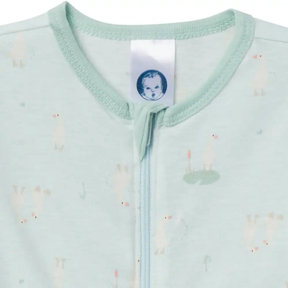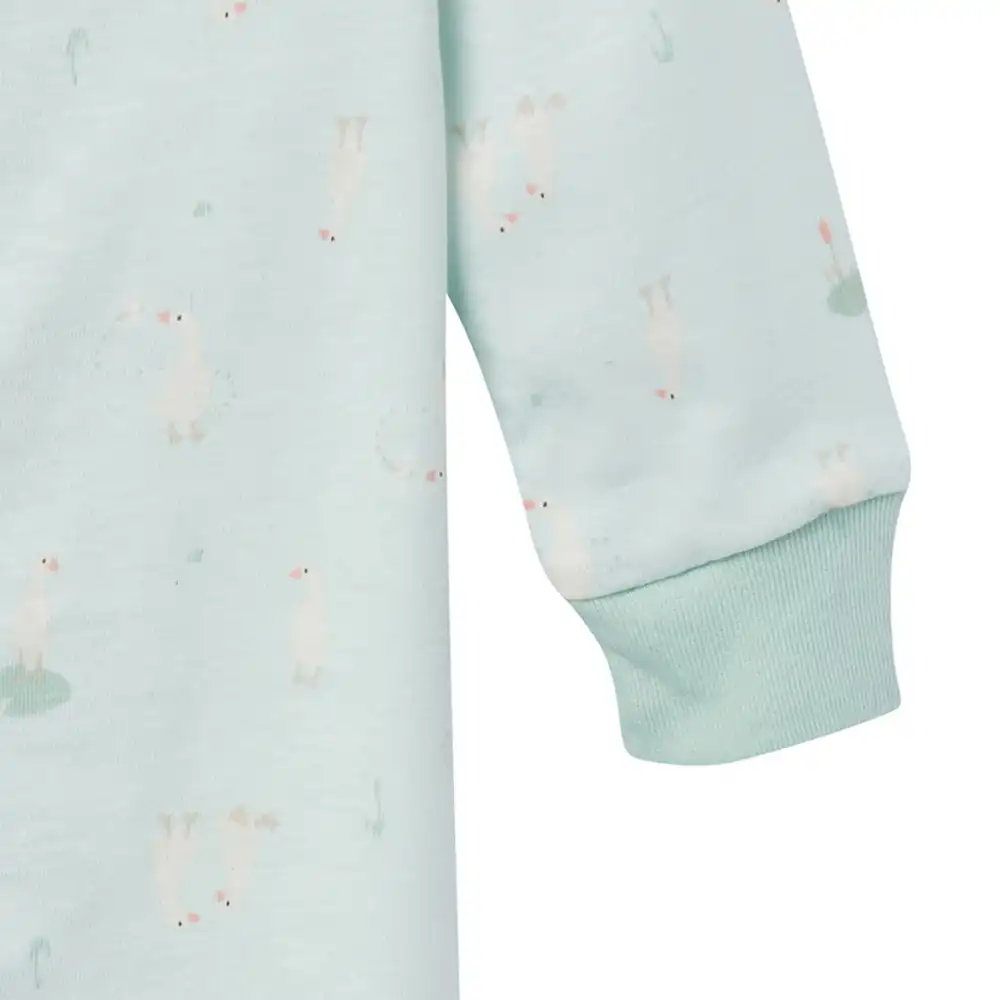 Keep your little one cozy in our light blue Sleep 'N Play, featuring adorable geese and pond pattern. Made from 100% cotton, it’s gentle on sensitive skin, ensuring comfort whether it's naptime or playtime. The full-length zipper with neckline protector makes dressing and diaper changes easy, while the ribbed cuffs and neckline ensure a snug, comfy fit. The footie style keeps tiny toes warm and snug, giving it a perfect, cozy fit. Versatile and charming our Sleep 'N Play is a must-have for your baby’s wardrobe. Our essentials have been independently certified with STANDARD 100 by OEKO-TEX® so that you don’t have to worry about harmful substances in your baby’s wardrobe. This pack includes 1 Sleep 'N Play.