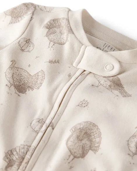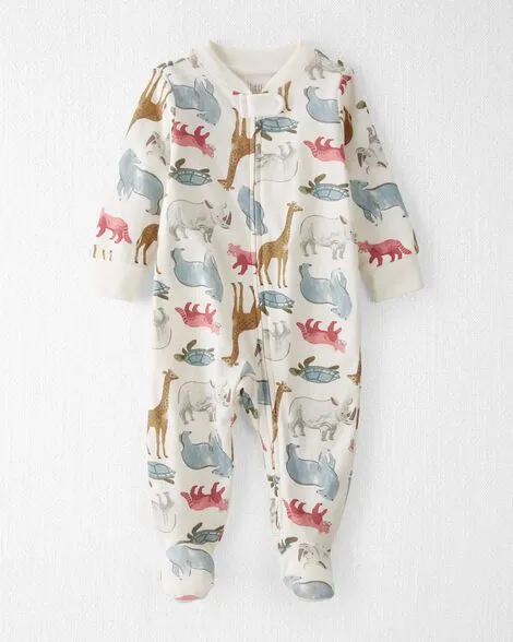 Designed in the softest organic cotton and made with baby's comfort in mind, this sleep & play is wild with thoughtful details like a 2-way zipper to keep baby's arms & torso warm during diaper changes, plus built-in footies to keep tiny toes cozy. Featuring our harvest pumpkins print, this 1-piece is naturally charming and inspired by nature. Crafted in the purest organic fabrics and sustainable materials, Little Planet is a return to simplicity. Thoughtful essentials and timeless pieces to gift or to hold on to.