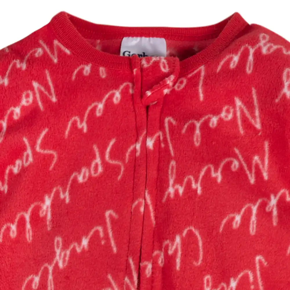 Uh Oh! We had an oopsie! Our misprinted merry print may be upside down, but we promise, it's still just as cute! Incredibly soft microfleece footed fleece pajamas are the perfect way to keep your little one cozy on cool nights. It's the ultimate option for a peaceful night's sleep. Designed for colder weather, these footed pajamas wrap your little one in comfort all night long. Our essentials have been independently certified with STANDARD 100 by OEKO-TEX® so that you don’t have to worry about harmful substances in your baby’s wardrobe. Flame resistant for child safety. Pack includes one pair of fleece pajamas.