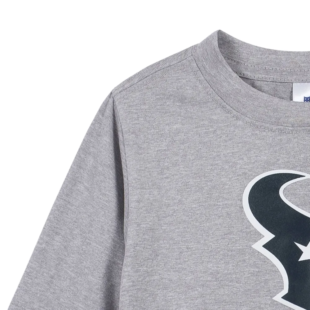 Come on, Texans! Get the smallest family members ready to cheer with our officially licensed NFL long sleeve toddler tee. This product contains Repreve® polyester made from recycled plastic bottles (or recycled content). Products made with Repreve help to conserve energy and natural resources. And, gives you another great reason to recycle. The tee features a comfy, casual crew neck to keep your little one comfortable throughout the entirety of the game (and the whole day long!). The screen print team logo is bright and bold and is featured front and center on the t-shirt. This t-shirt is machine washable to take care of any game-time spills.