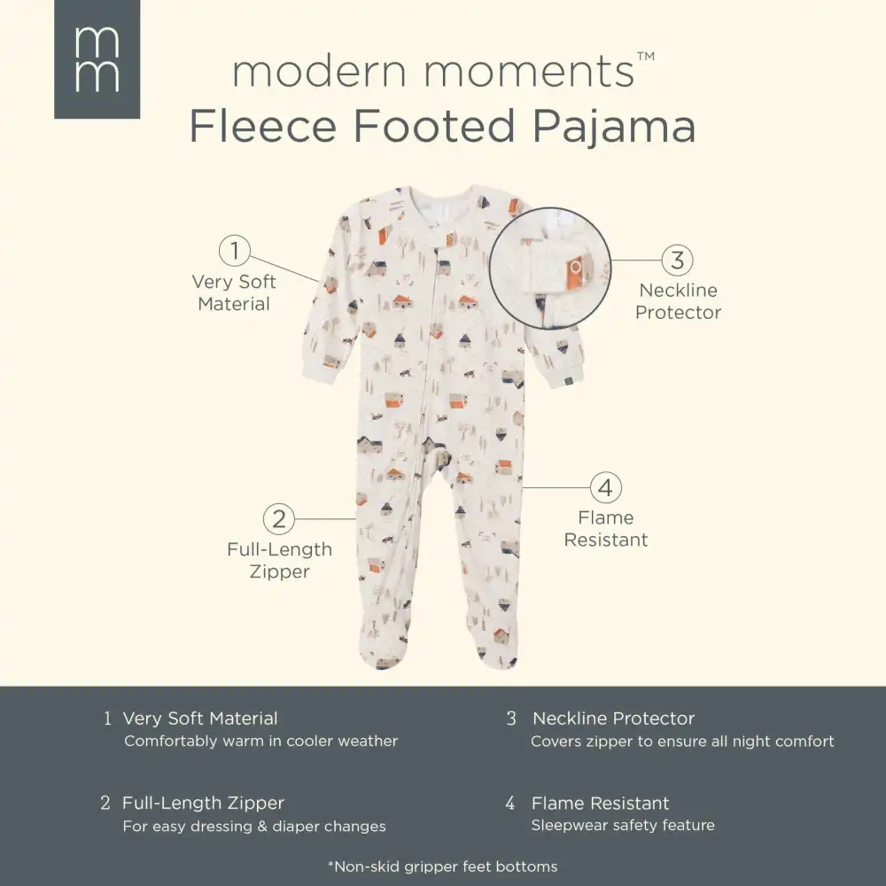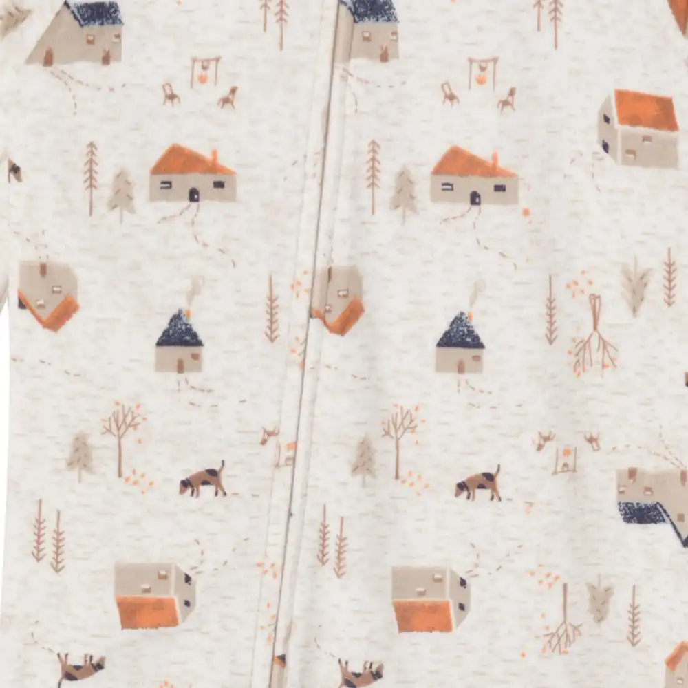 • Infant and Toddler Boys Oatmeal Village Footed Fleece Pajamas