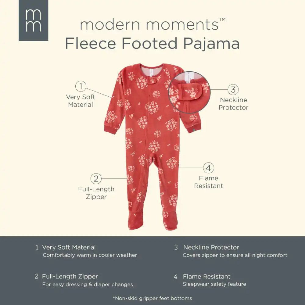 • Infant and Toddler Girls Red Bouquet Footed Fleece Pajamas