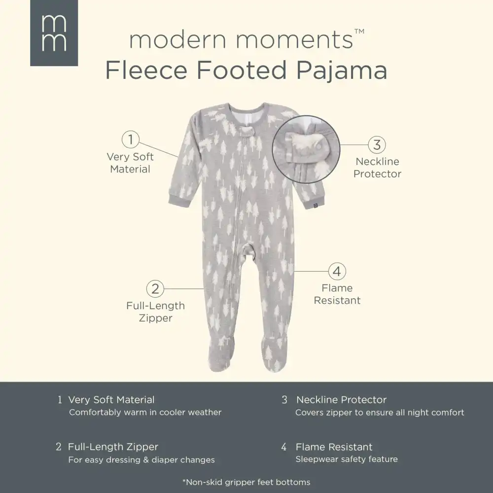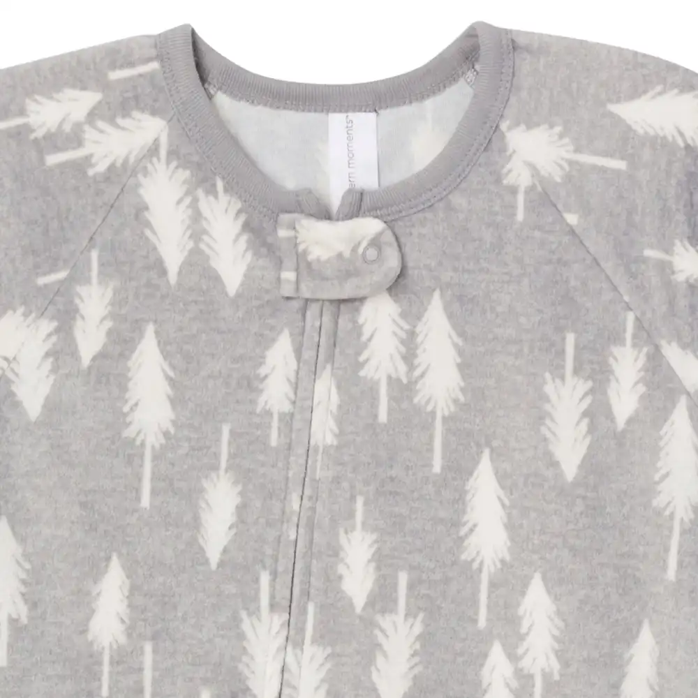 • Infant and Toddler Neutral Grey Heather Trees Footed Fleece Pajamas