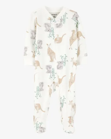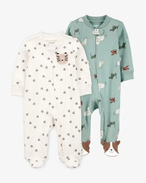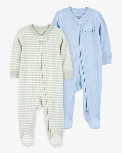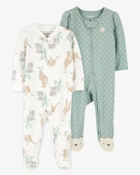 Baby 2-Pack Cotton 2-Way Zip Sleep & Play Pajamas - Green/Ivory