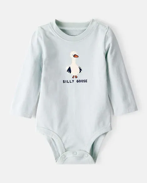Baby Silly Goose Cotton Long-Sleeve Graphic Bodysuit - Blue