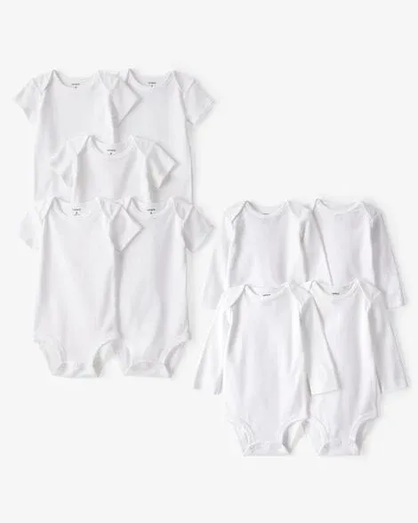 Baby 9-Pack Short Sleeve & Long Sleeve Cotton Bodysuits - White