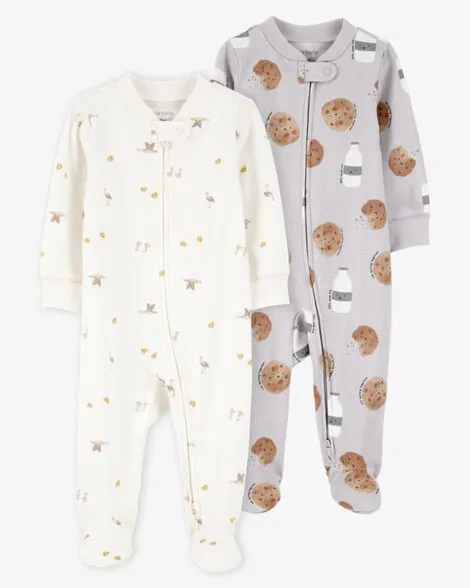 Baby Milk & Cookies 2-Way Zip Cotton Sleep & Play Pajamas