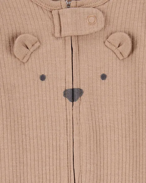 Baby Bear 2-Way Zip Ribbed Sleep & Play Pajamas - Brown