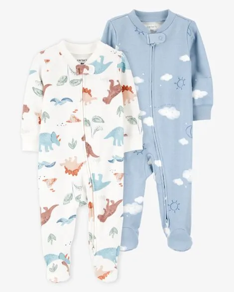Baby 2-Pack Cotton 2-Way Zip Sleep & Play Pajamas - Blue/Ivory