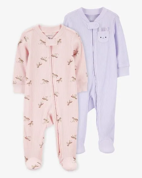 Baby 2-Pack Ribbed 2-Way Zip Sleep & Play Pajamas - Pink/Purple