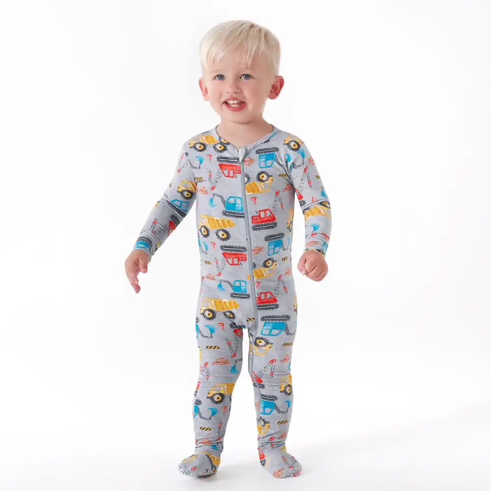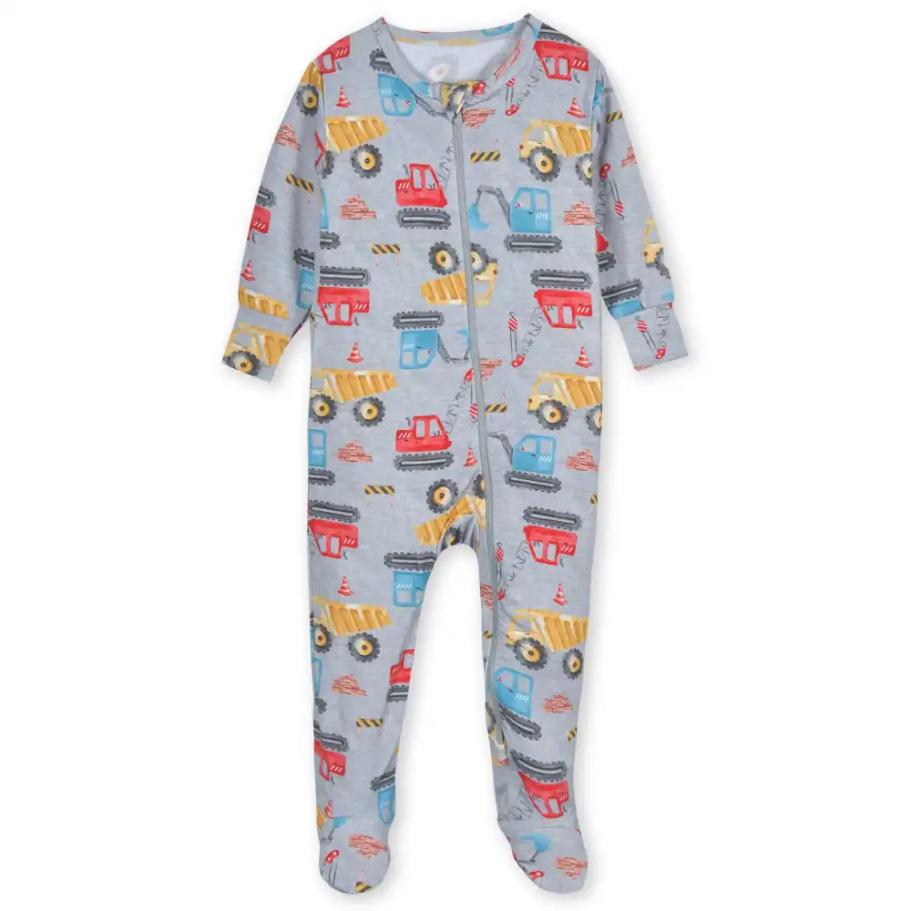Baby & Toddler Boys Construction Trucks Buttery Soft Viscose Made from Eucalyptus Snug Fit Footed Pajamas