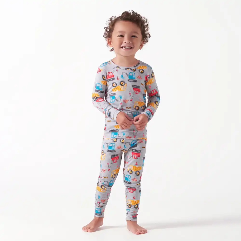 2-Piece Infant & Toddler Boys Construction Trucks Buttery Soft Viscose Made from Eucalyptus Snug Fit Pajamas