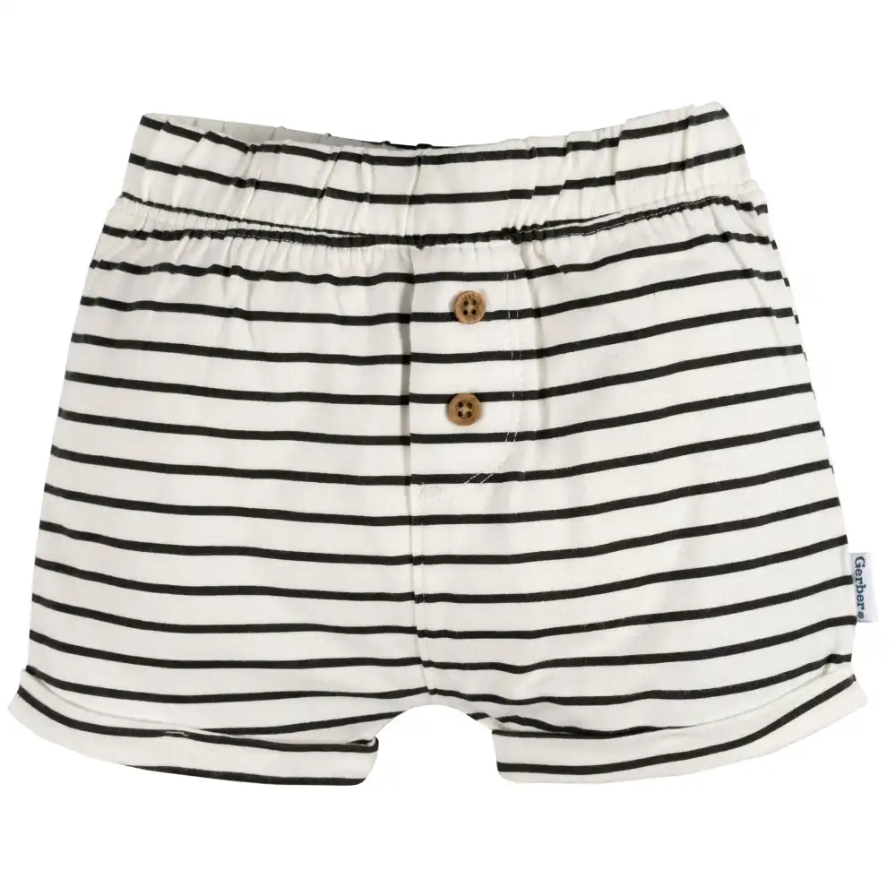 3-Pack Baby Neutral Black Stripe, Light Grey Heather, & Green Knit Shorts
